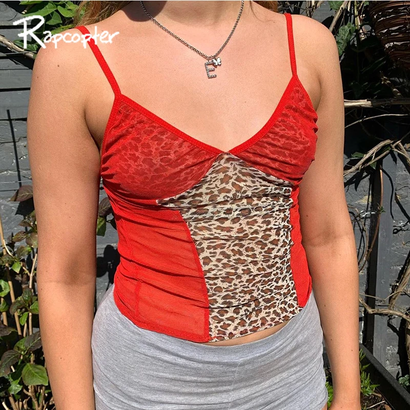 Женский топ с леопардовым принтом y2k, летний сетчатый корсет без р...
