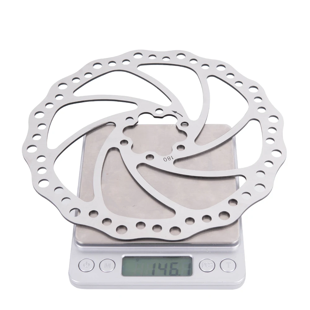 Можно использовать все ступицы дискового тормоза, можно использовать дисковый тормоз/проводной дисковый тормоз, диск имеет хорошую жесткость, Быстрое рассеивание тепла, отражающееся на большом спуске на большое расстояние, диск не будет красноватым горячим, значительно повышает безопасность при спуске вниз!
