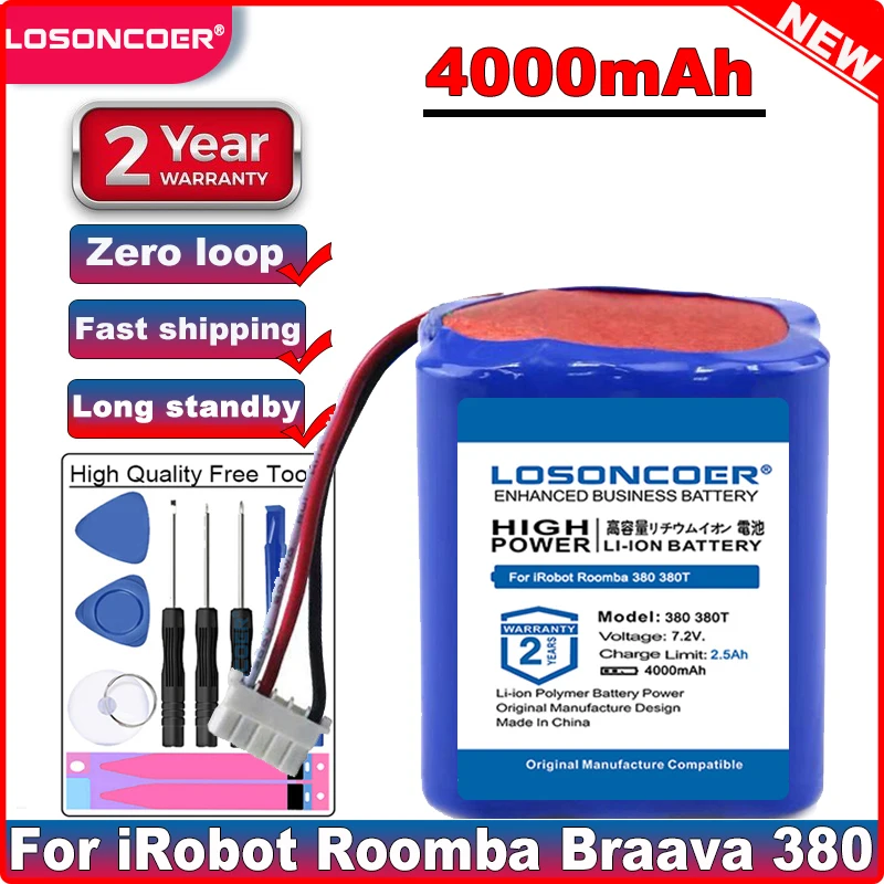 Аккумуляторная батарея LOSONCOER 7,2 в, 4000 мАч для iRobot Roomba Braava 380 380t 380j Mint 5200 5200B 5200C Ni-MH