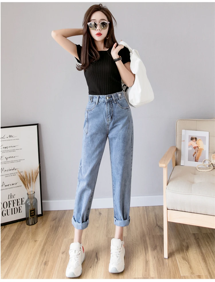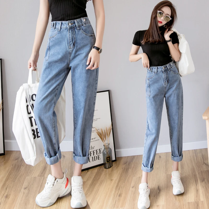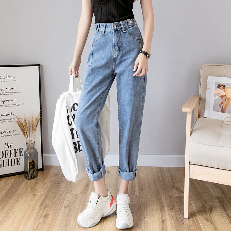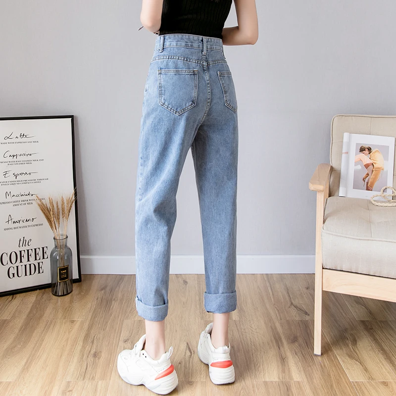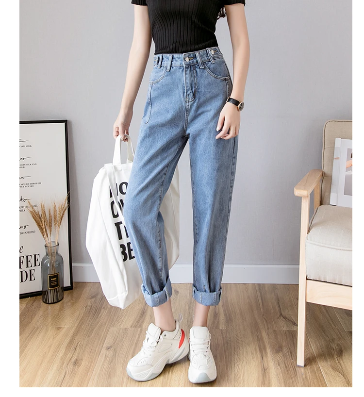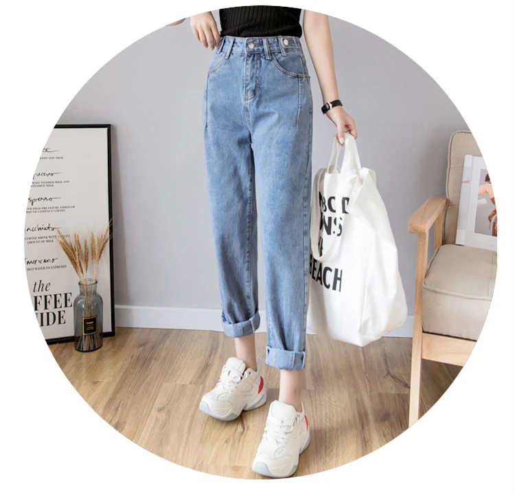 Новинка 2020 повседневные свободные мешковатые джинсы женские осенние Джинсы бойфренда с высокой талией шаровары на пуговицах джинсовые брюки длиной до щиколотки