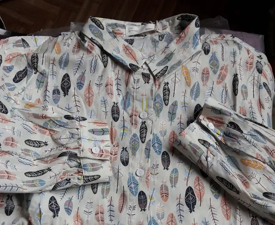 У Инман всегда отличные рубашки и эта не стала исключением. На параметры 91-73 и узкие плечи размер М тютелька в тютельку. Наверное, L была бы лучше тем, кто любит носить небольшой оверсайз. Хлопок тонкий, можно заправить в юбку без подклада.