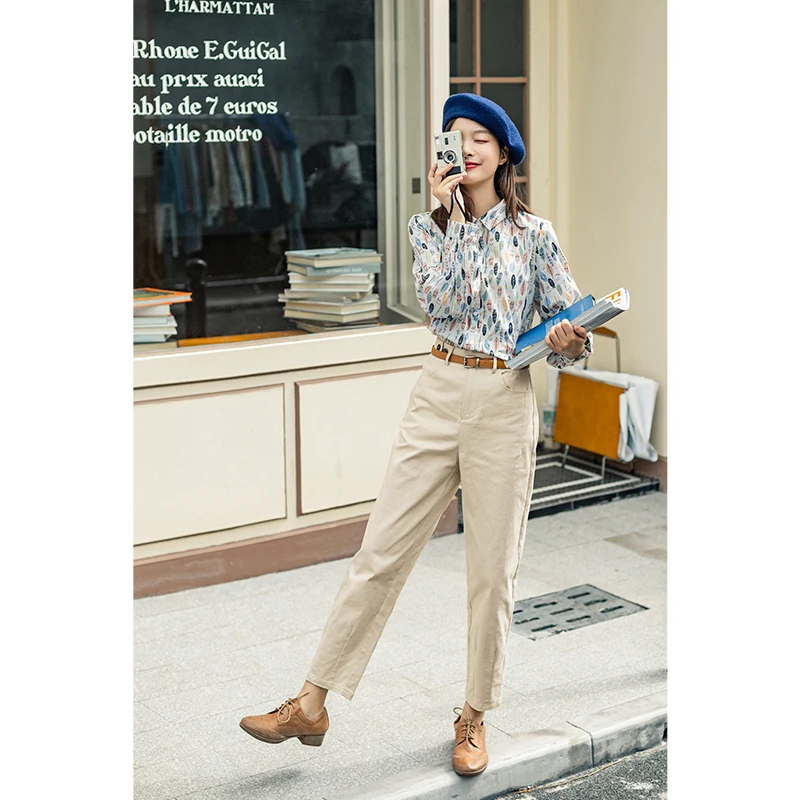 Рубашка INMAN женская с цветочным принтом, винтажная блузка на пуговицах, с отложным воротником и длинным рукавом, с отложным воротником, для молодежи, Осень-зима