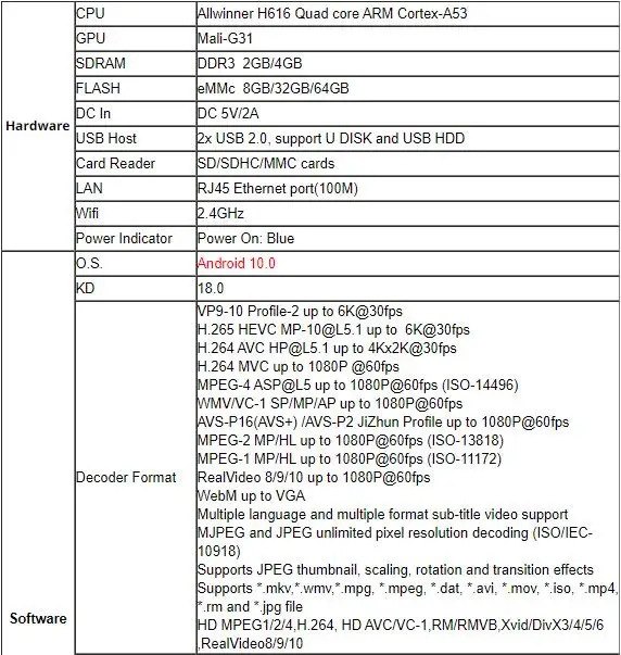 1, четырехъядерный процессор Allwinner H616 ARM Cortex A53;