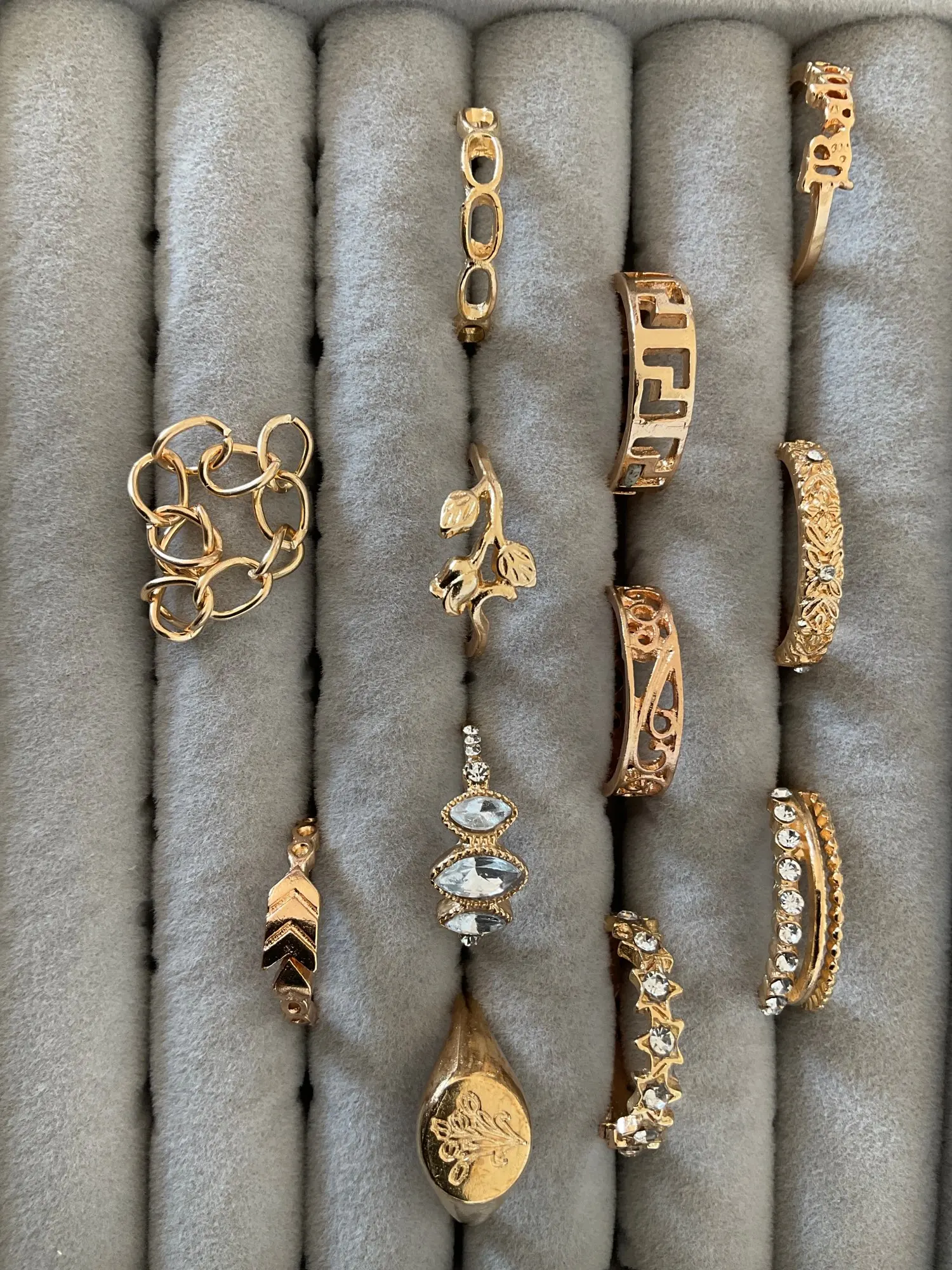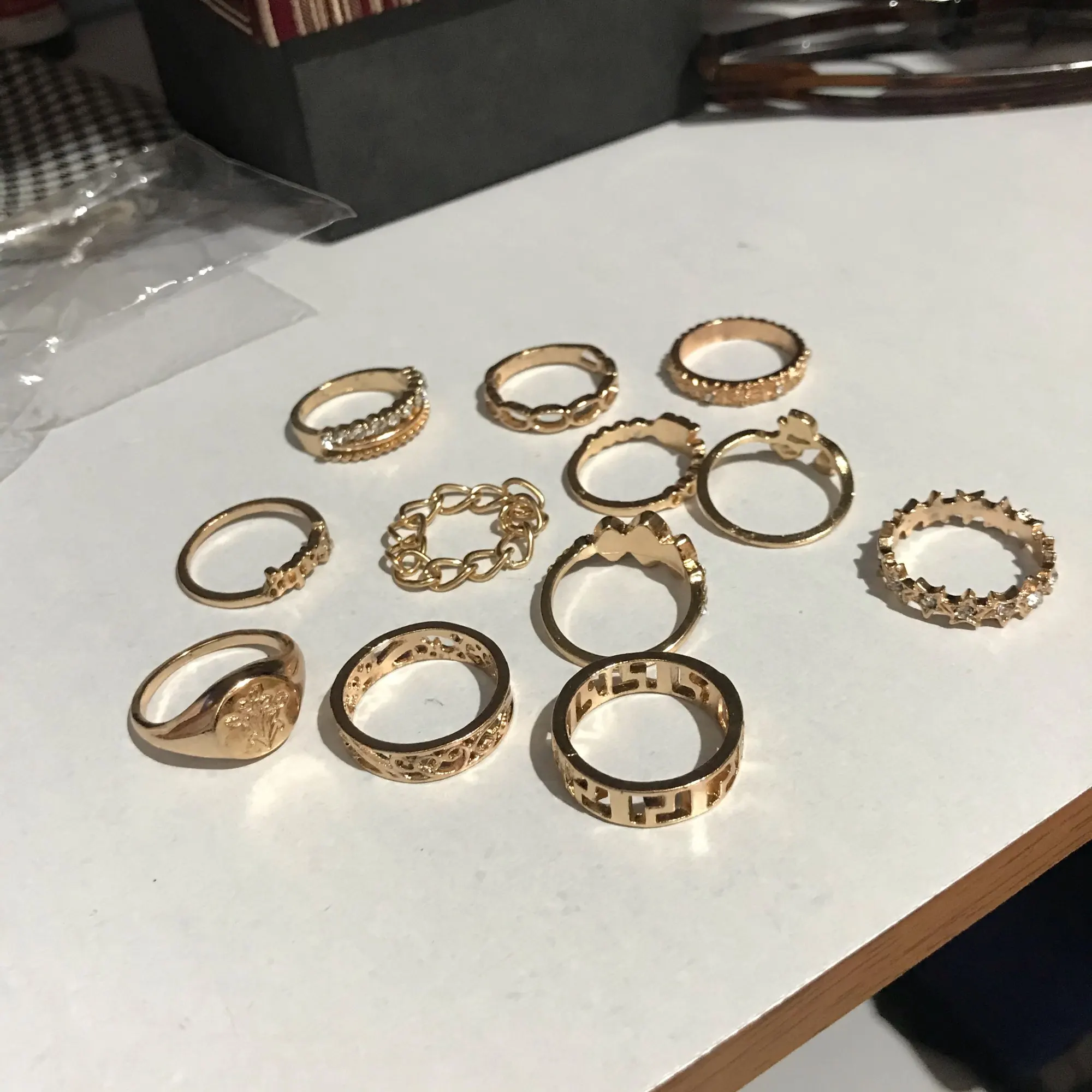 Набор обручальных колец LETAPI, 12 шт.компл., золотистого цвета Богемские, с геометрическим рисунком, с цветком, звездой, стрелой, с кристаллом
