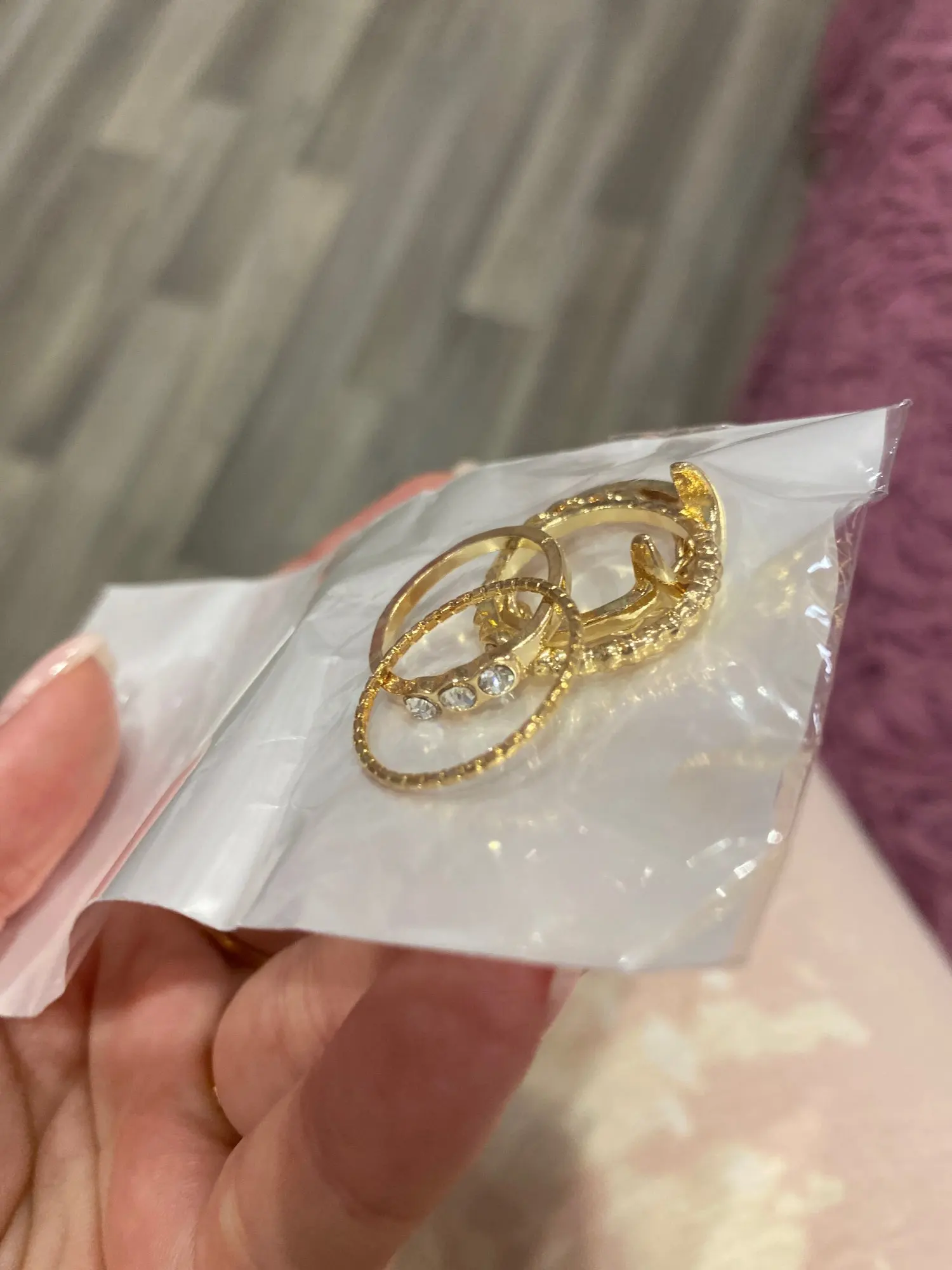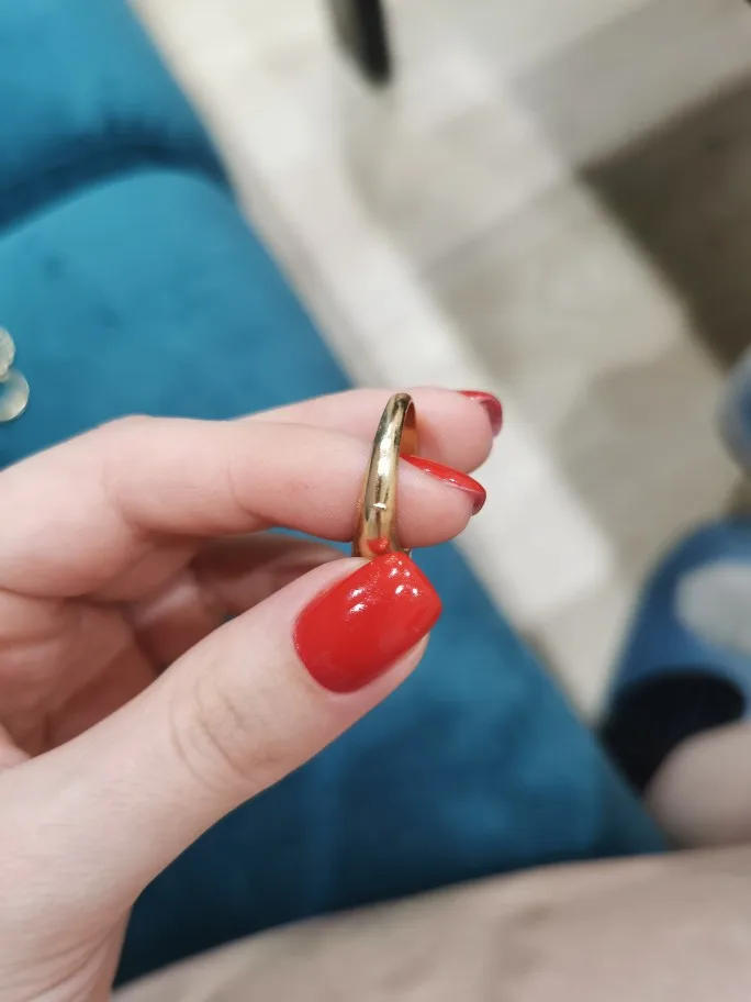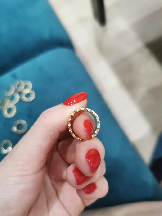Колечки на фото и вживую издалека похожи, выполнены из очень мягкого материала, два колечка с разрывном, сразу можно выбрасывать , визуально и на ощупь сделаны наспех из тонкого аллюитния