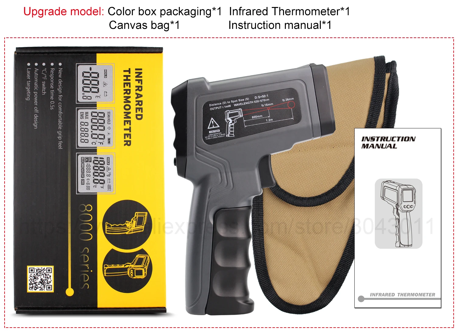 Цифровой инфракрасный термометр-50 380550750110013001600 градусов, одиндвойной лазерный Бесконтактный термометр, термометр, пистолет