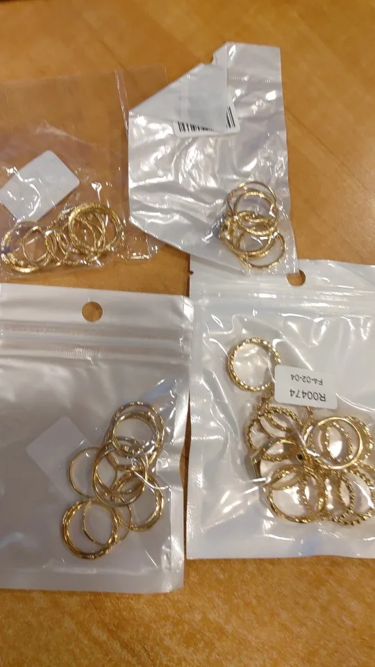 Кольца Потрясающие, некоторые из них больше, а некоторые из них меньше, поэтому у вас есть кольца для разных пальцев! Очень хорошо, выглядит так же, как на фото!