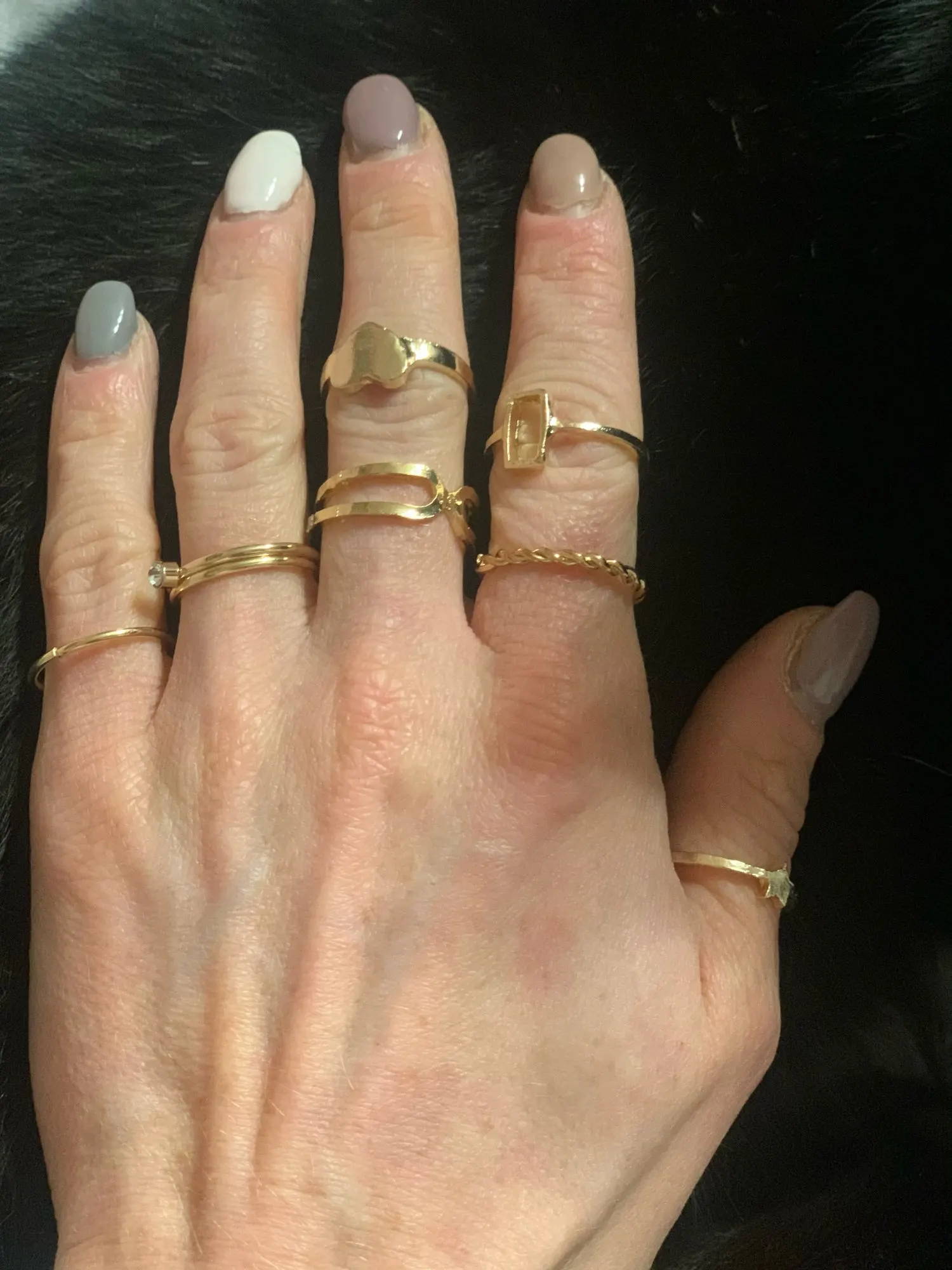 Удивительные кольца. Отлично смотрится на пальцах. Некоторые кольца немного великоваты по своему вкусу, но все в порядке, так как я могу носить их на большом пальце