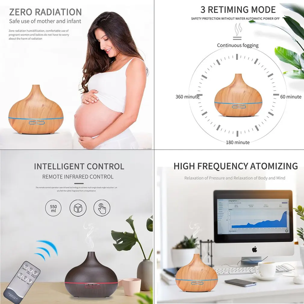 550 мл Электрический увлажнитель воздуха, ультразвуковой увлажнитель воздуха с древесным зерном, эфирное масло, ароматерапия, туман, арома-лампа