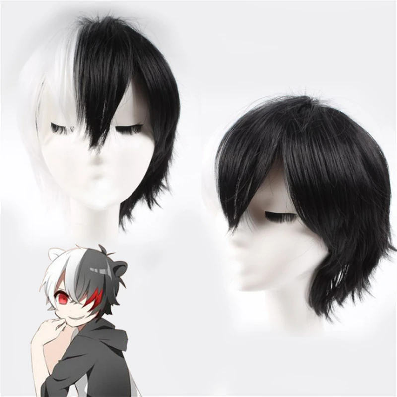 Парик для косплея для мужчин Danganronpa: Trigger Happy Havoc, парик из данганронпа Монокума для игр с короткими черными белыми волосами на Хэллоуин 1:1