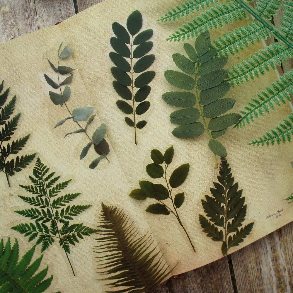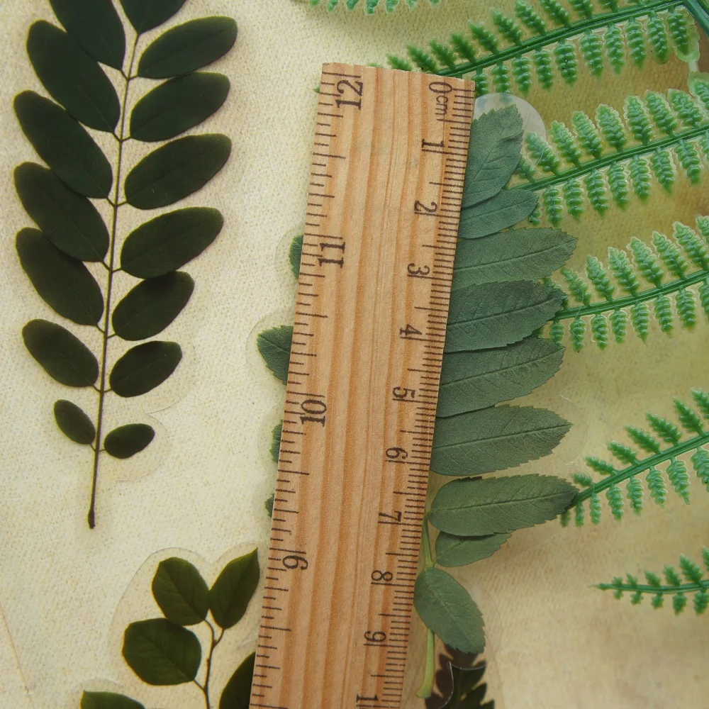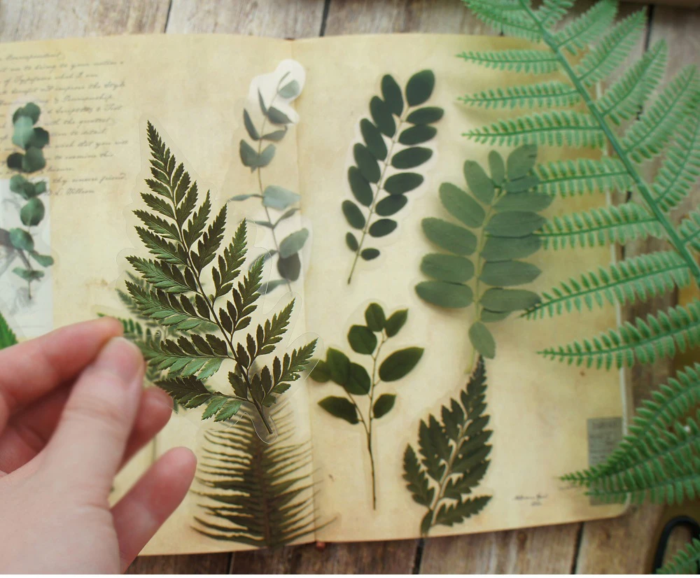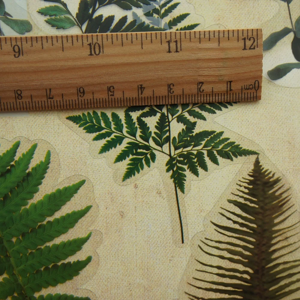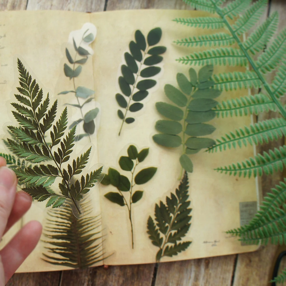 Прозрачные наклейки с натуральным зеленым папоротником, в виде лист...