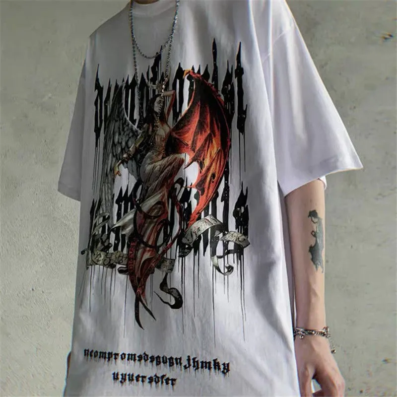 Футболка в стиле Харадзюку, парная рубашка, мужские футболки с принтом граффити, Корейская футболка оверсайз, лето 2020, парная футболка с графическим принтом