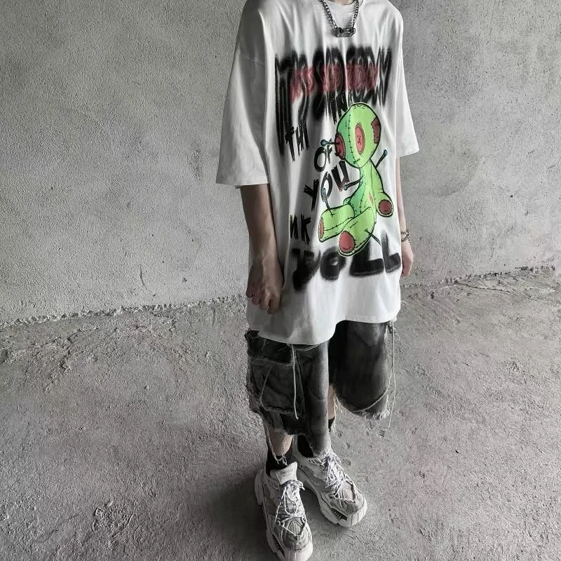 Рубашка в стиле Харадзюку, одежда в стиле граффити, Корейская футбо...