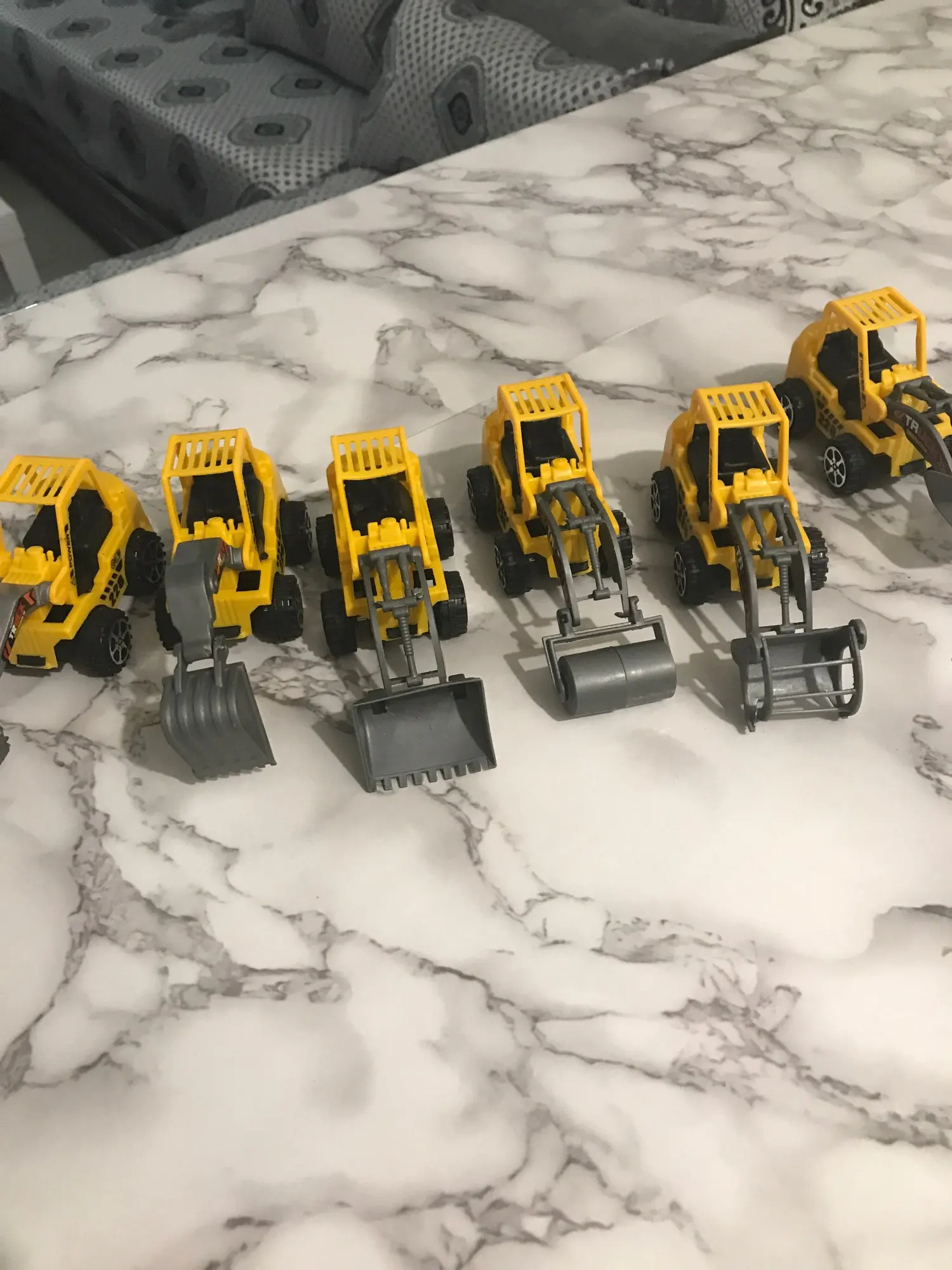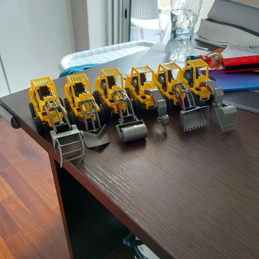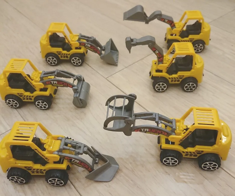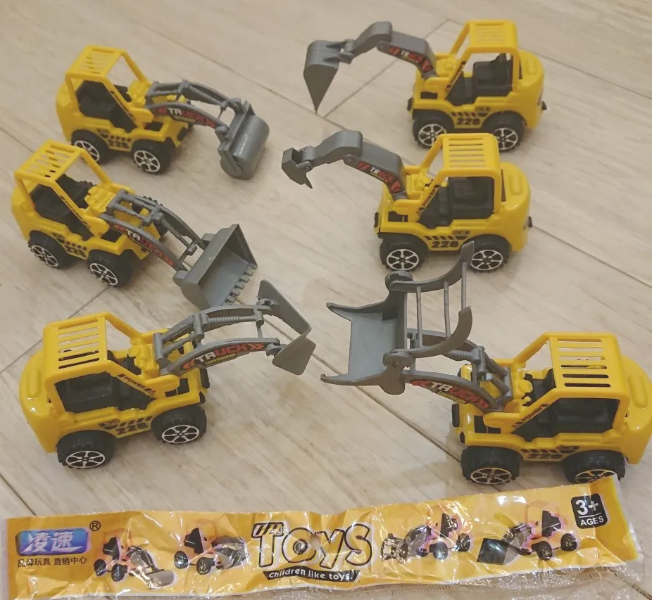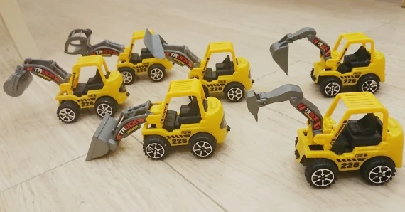 Красивые строительные машинки, яркие. Кабина и шасси у всех машин одинаковые. Если что-то сломается, то можно использовать сломанный трактор для восстановления других из набора. Строительные механизмы все разные - хорошо показывают виды строительных работ, специфику операций. Хорошо ложатся в руку ребёнка от 2 до 5 лет. Хотя на упаковке указание от 3-х лет, как всегда. Машинки лёгкие, тонкая пластмасса. Цена хорошая, не дорогая. Прочности достаточно чтобы ребенок наигрался, понял что для чего используется на стройке. Рекмендую!