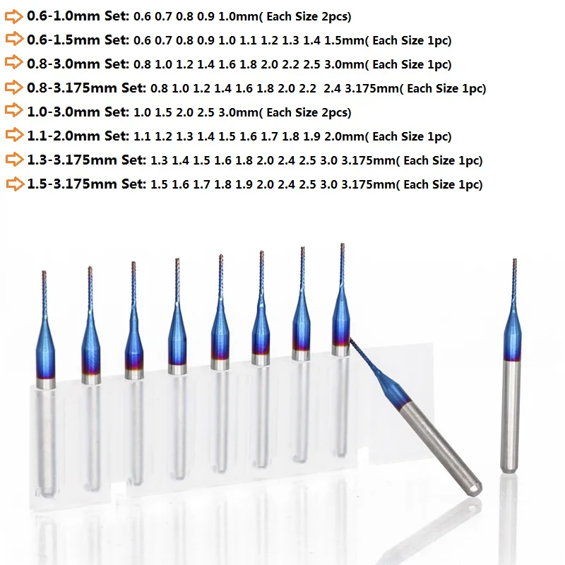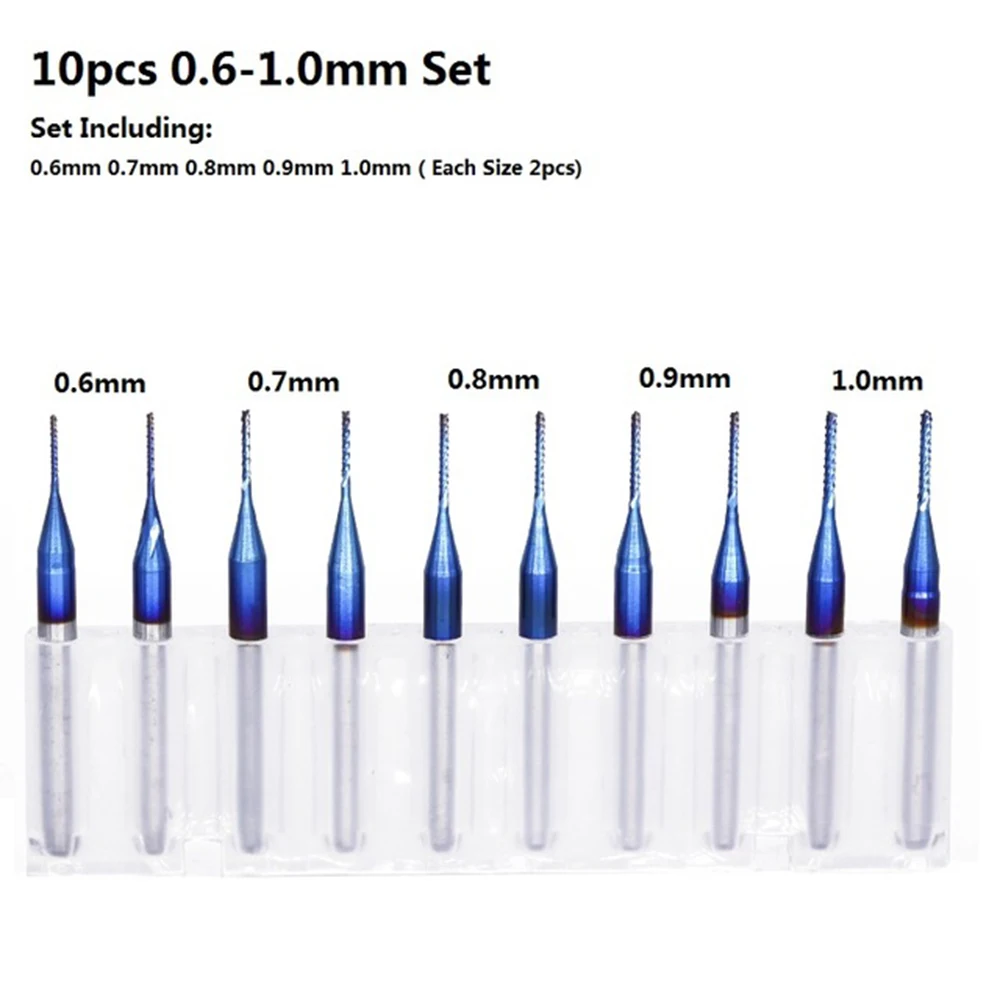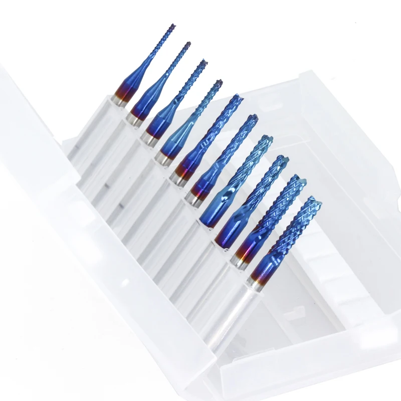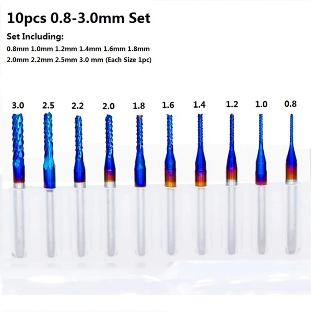 10 шт., фрезерный станок с ЧПУ, 3,175 дюйма, с голубым хвостовиком, 0,8-3,0 мм
