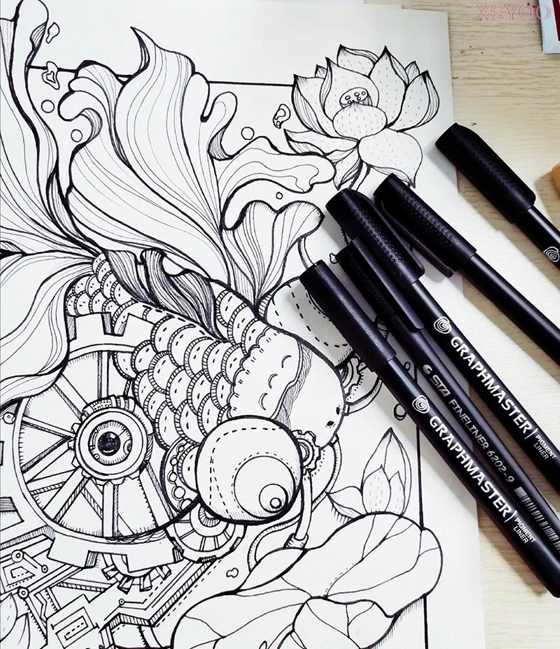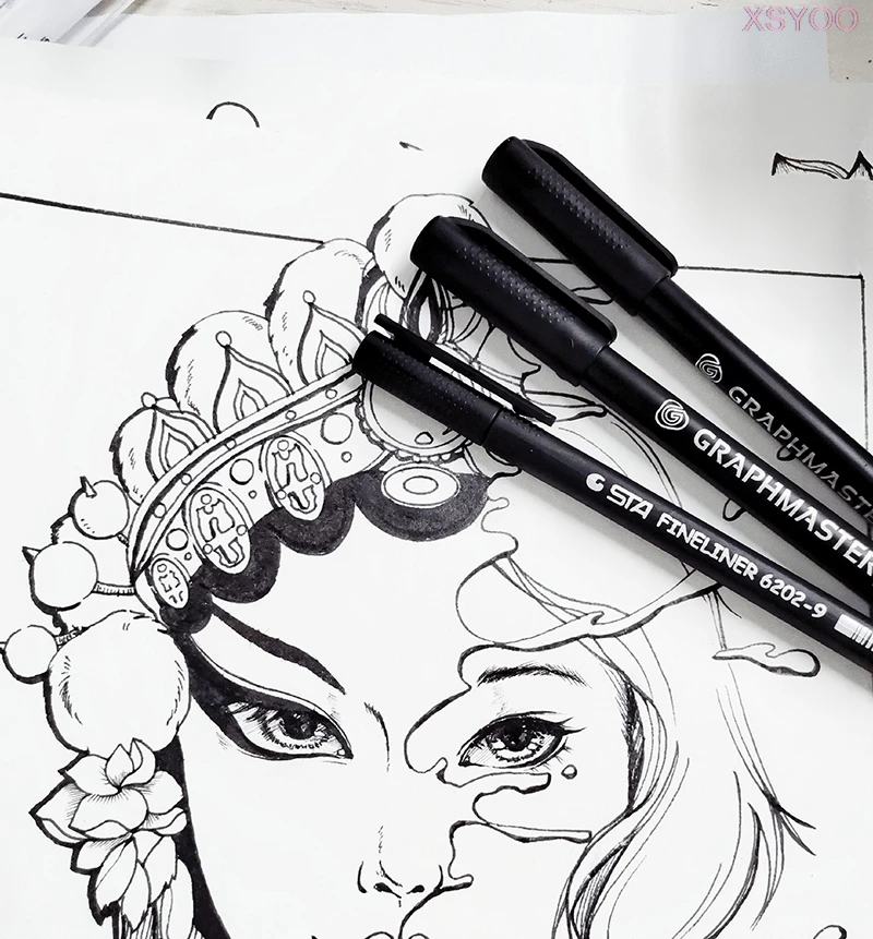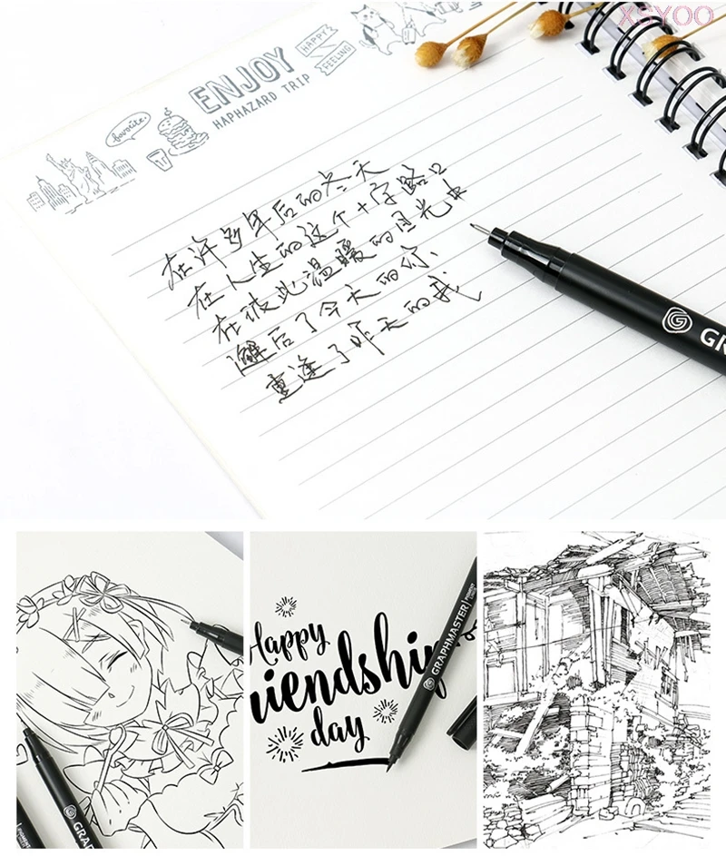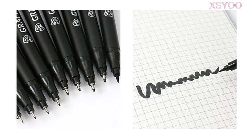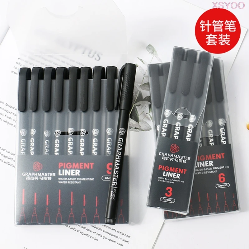 9 шт.компл., черный пигментный лайнер, водостойкая ручка для рисова...