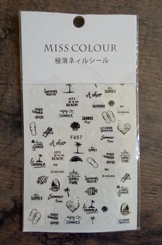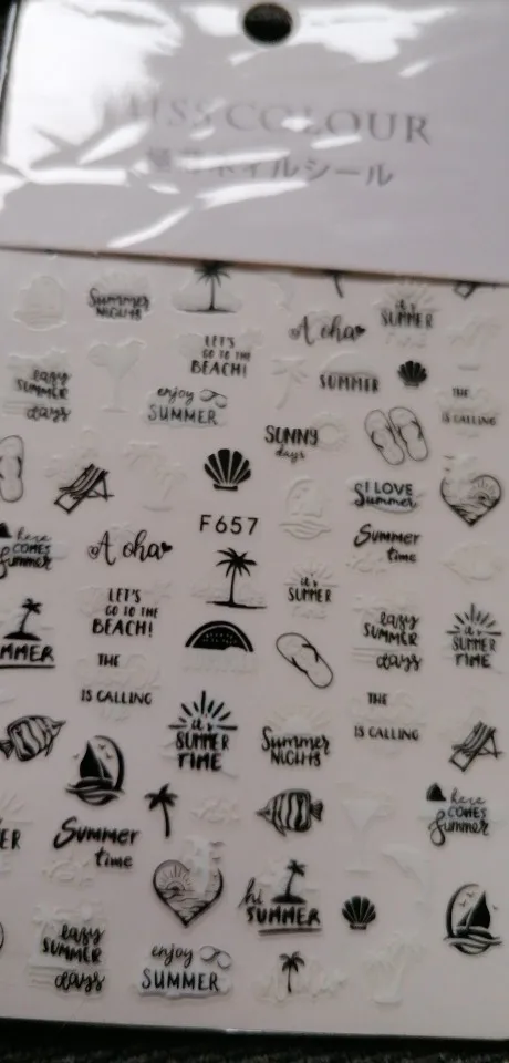 3D наклейки для ногтей, 1 шт., летние, черные, белые, с цветами, листьями, декоративные, слайдеры, наклейки для ногтевого дизайна