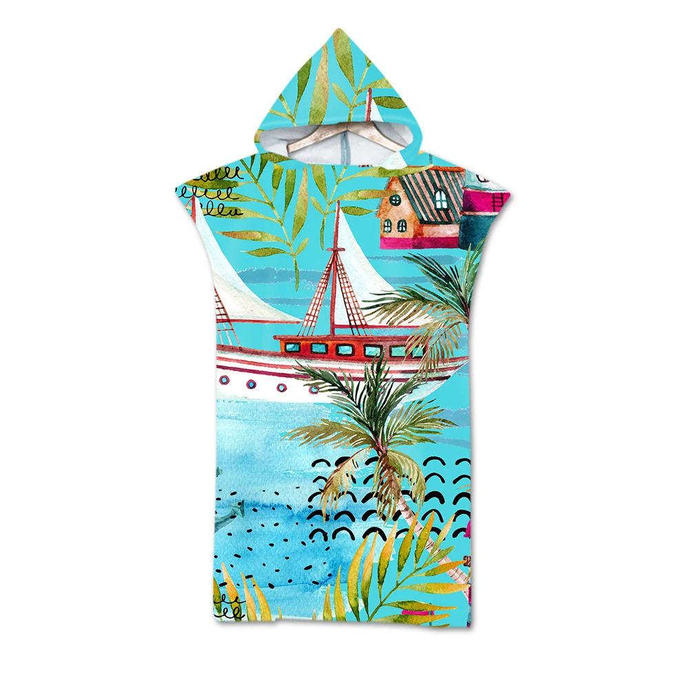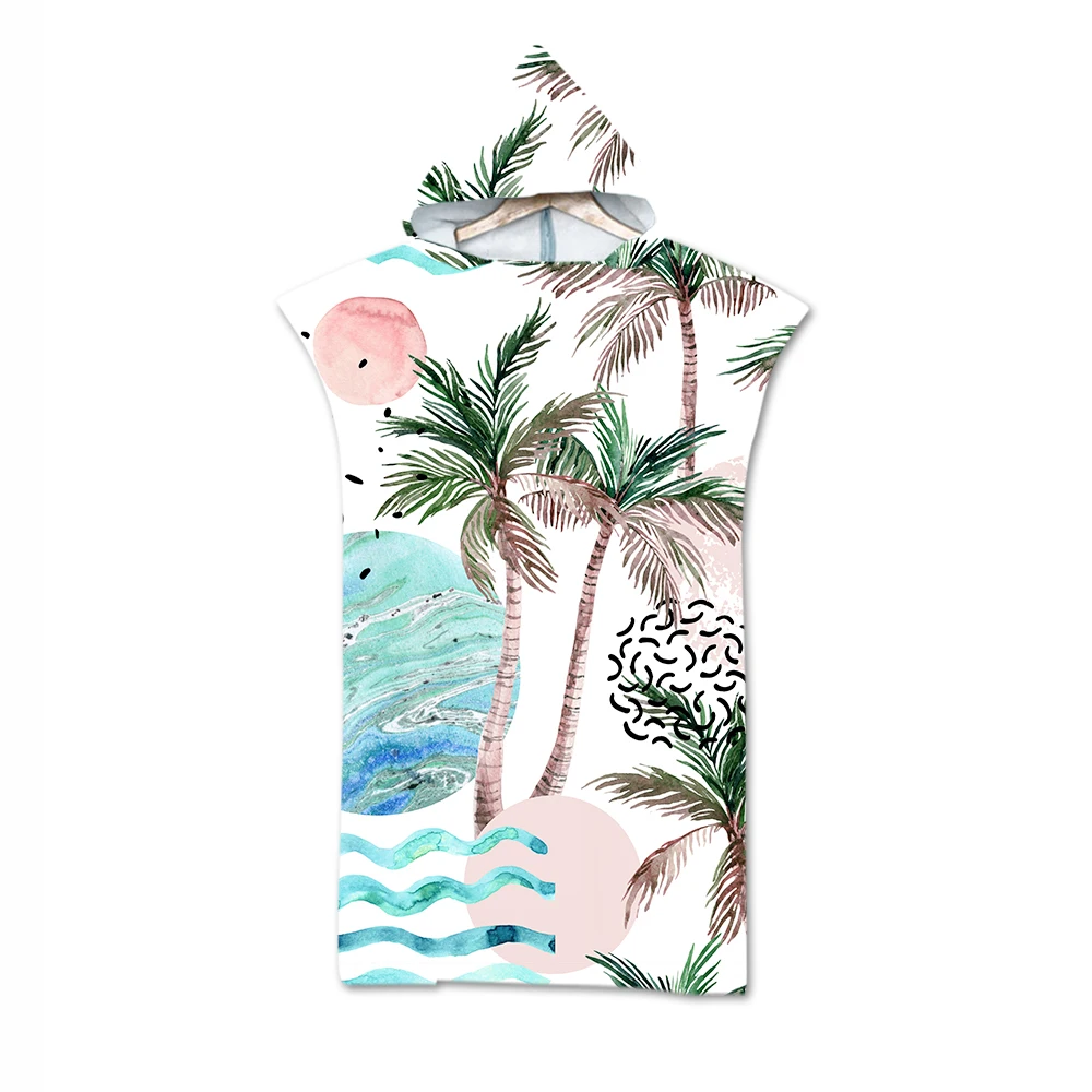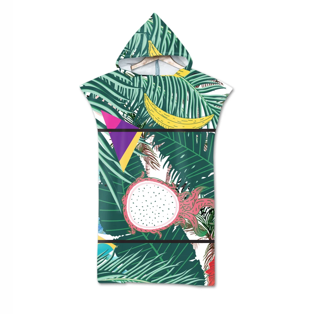 75*140 см, гидрокостюм, халат, Пляжное Пончо, полотенце с капюшоном, двусторонний принт тропических листьев, банное полотенце, верхняя одежда, быстро сохнет