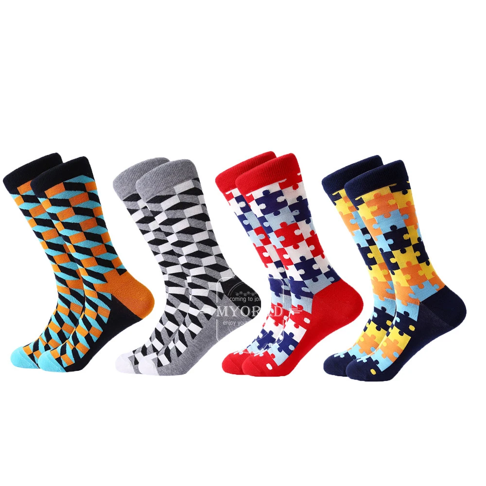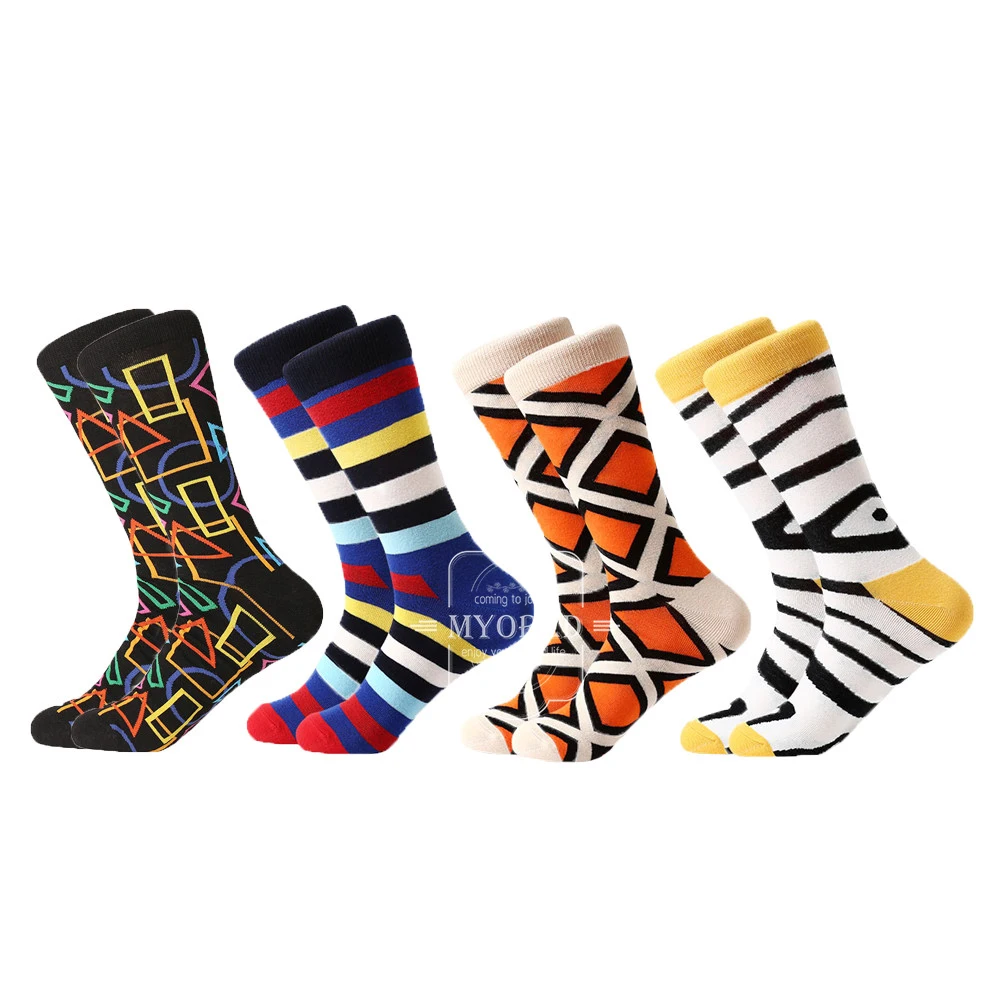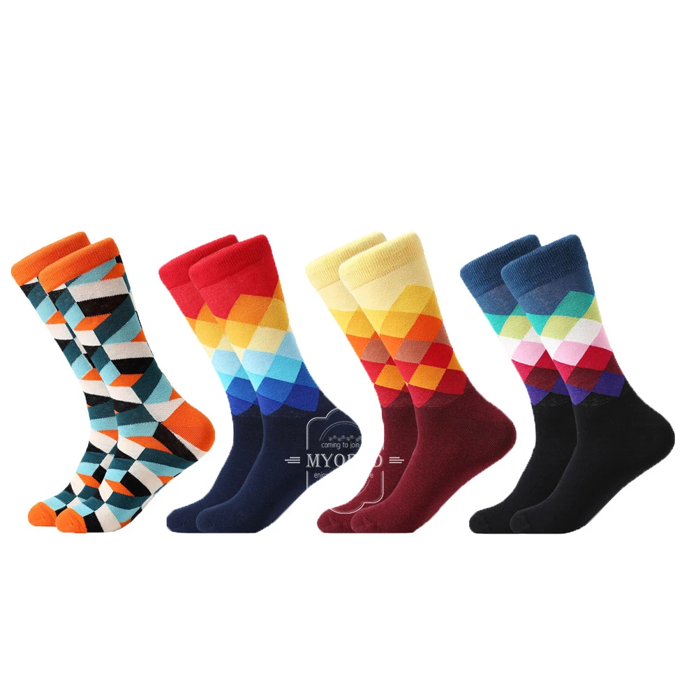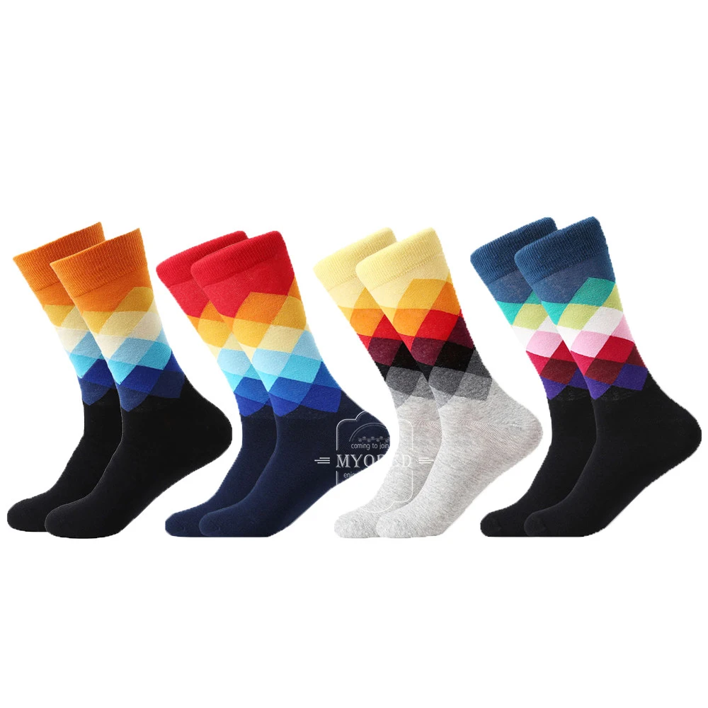 MYORED 4 парлот 2020 новые носки мужские повседневные носки для деловых людей Разноцветные носки в полоску с ромбовидным узором