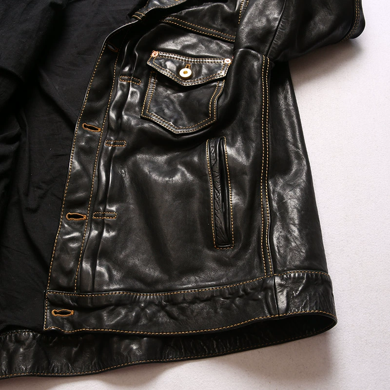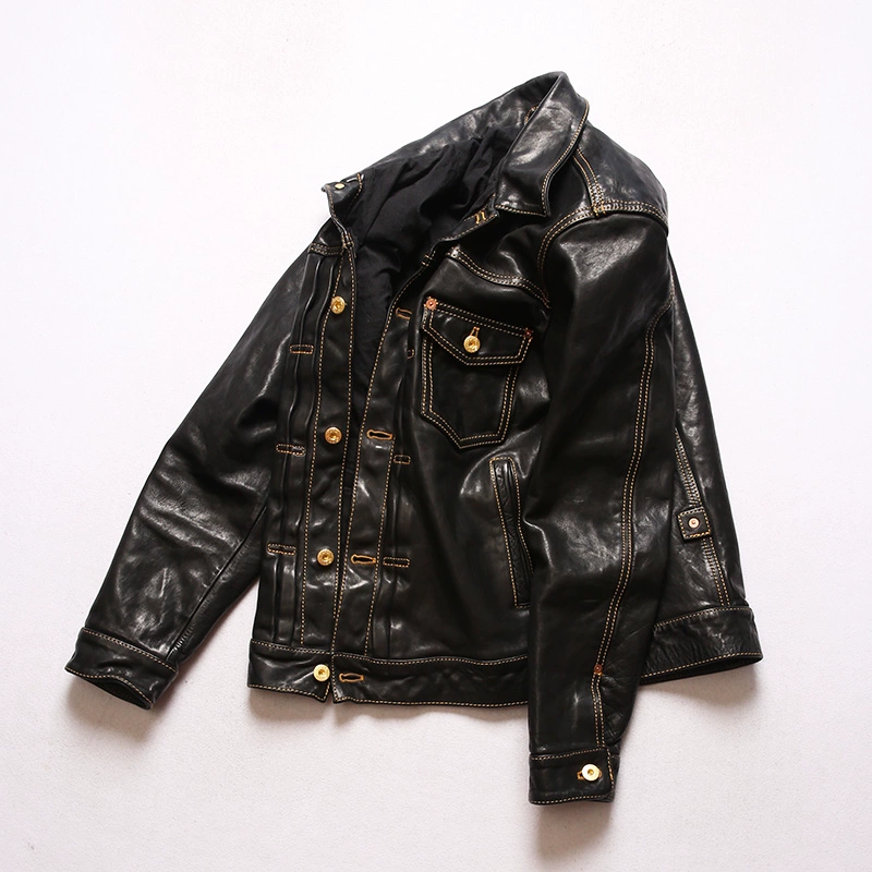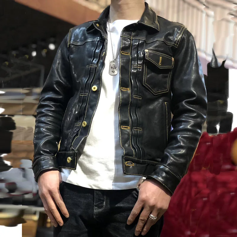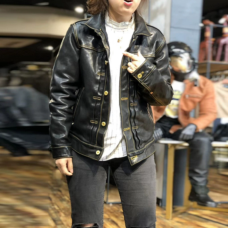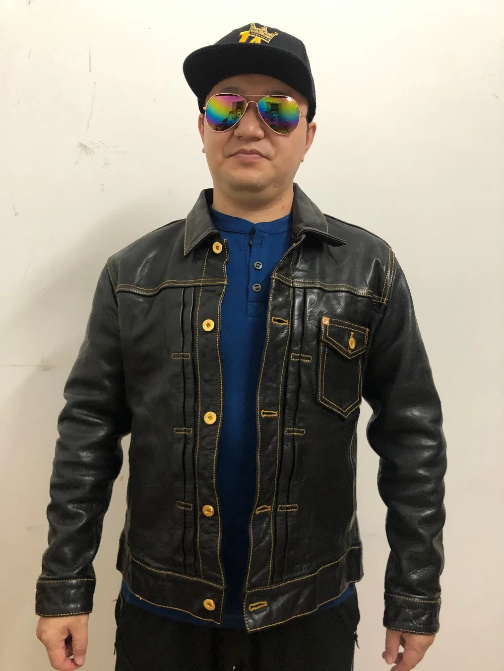 Модель P506 Rock в рулоне может читать описание! Приталенная Классическая стильная куртка из натуральной лошадиной кожи, Азиатского размера, высокого качества