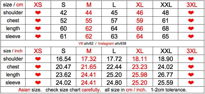 Пожалуйста, проверьте таблицу размеров и измерьте вашу куртку, как показано ниже.