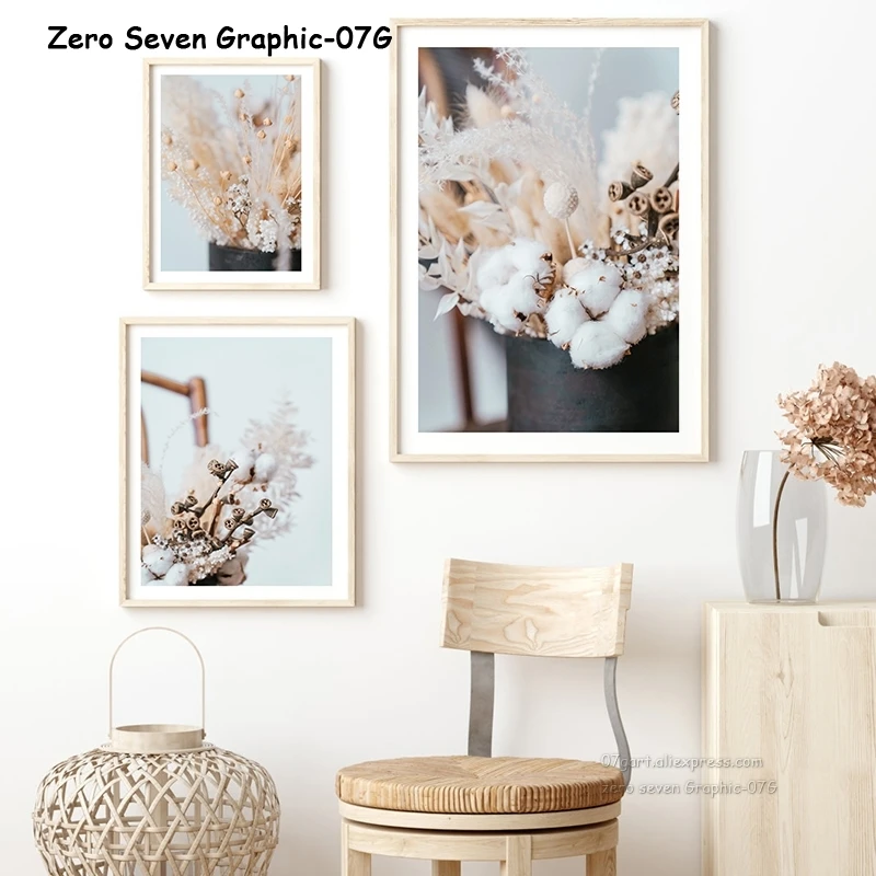 Скандинавские красивые осенние сушеные цветы, фото, картины из хлопка, эвкалипт, печать на холсте, плакат, искусство, украшение для комнаты, галереи