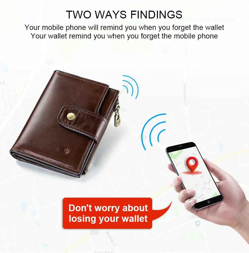 Кошелек мужской из натуральной кожи, с rfid-защитой, GPS-картой, Bluetooth-сигнализацией, дизайнерский кошелек высокого качества, 2020
