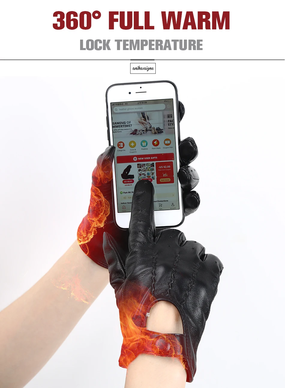 Модные мотоциклетные сенсорные перчатки, черные чувствительные перчатки с сенсорным экраном, женские перчатки из натуральной овчины-2004