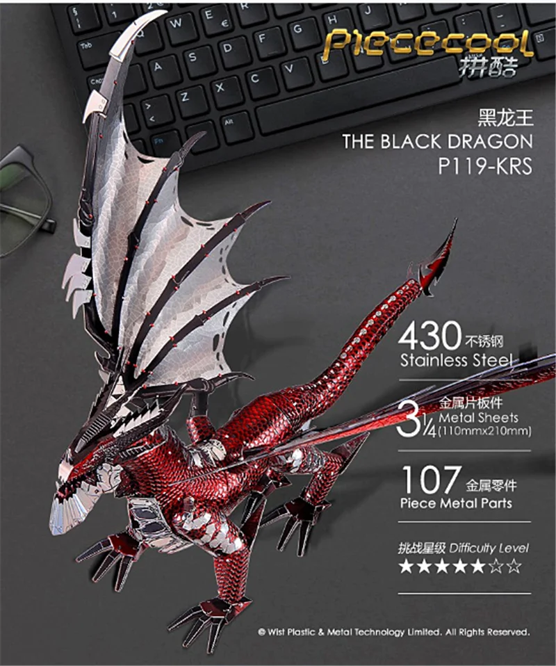 Металлический 3D-пазл Piececool, модель модели черный дракон, модел...