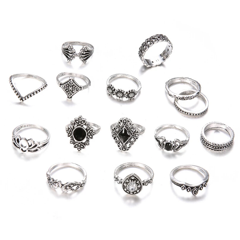 Набор Колец 15 шт.компл. Миди палец кольцо подарки для Для женщин набор Винтаж в стиле панк, бохо кольца костяшки ювелирные изделия любовь кольцо