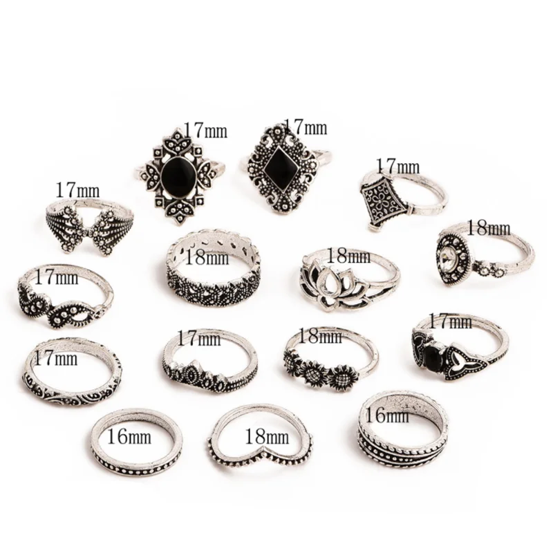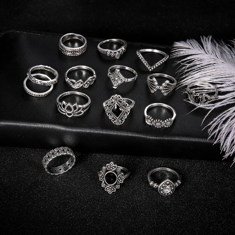 Комплект колец для женщин 15 шт.компл., готические эстатические вин...