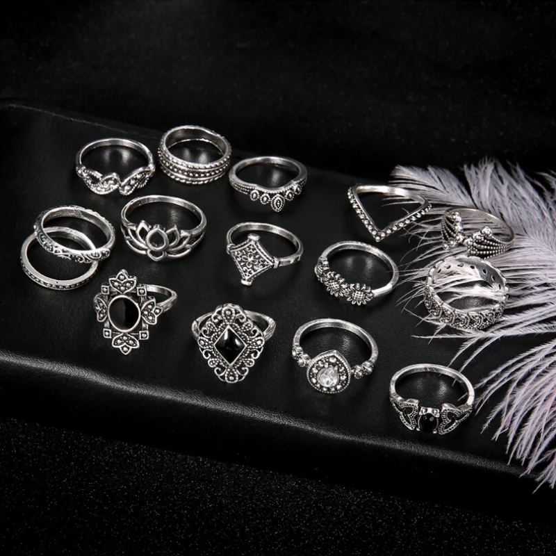 Кольцо женское в винтажном стиле, набор из 15 предметов, кольцо в б...