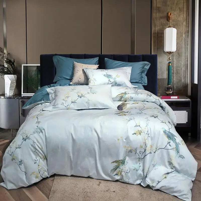 Комплект постельного белья из шелковистого египетского хлопка, желтого цвета, в китайском стиле, с птицами, цветами, пододеяльник, простыня на резинке, Королевский размер