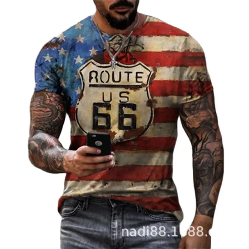 66 футболка в американском стиле дороги, спортивная одежда с 3d при...