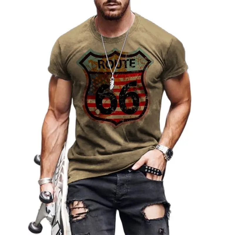66 футболка в американском стиле дороги, спортивная одежда для мужч...