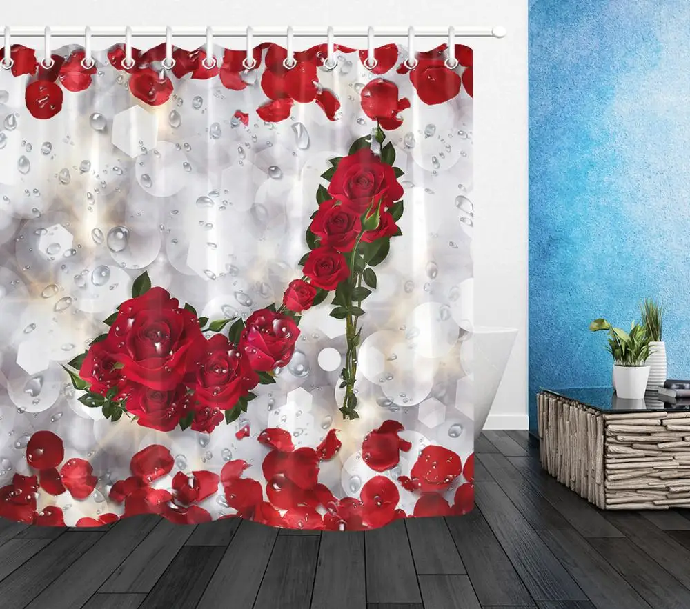 Занавеска для душа на День святого Валентина, штора из полиэстера, с красными лепестками роз, на высоком каблуке, занавеска для ванны, украшение для ванной комнаты с крючками