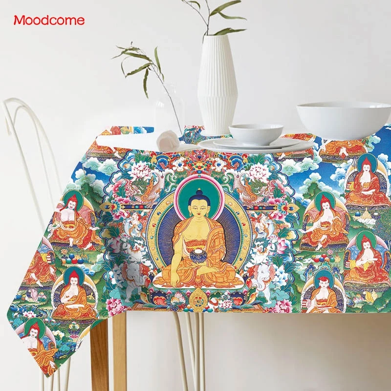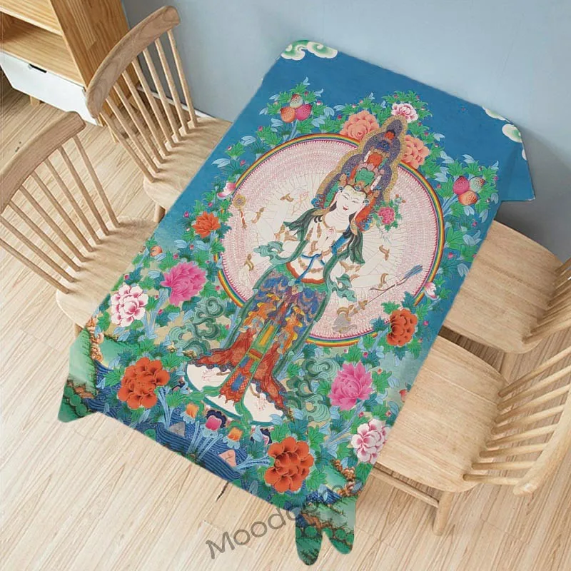 Тибетская Tangka буддистская искусство Sakyamuni Guanyin поклонение Будде искусство Водонепроницаемая скатерть для рабочего стола настенное искусство льняной настенный гобелен