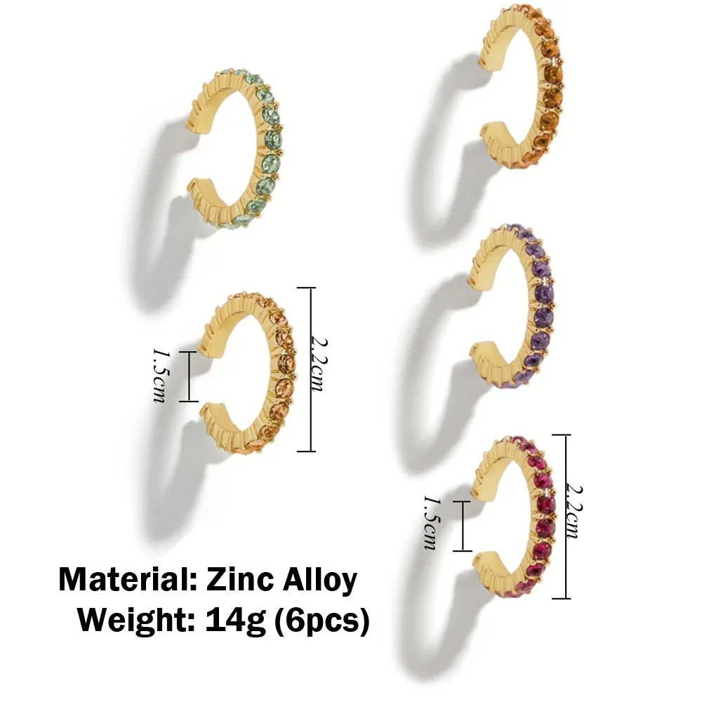 Зажимы для ушей женские, с разноцветными фианитами, 2020