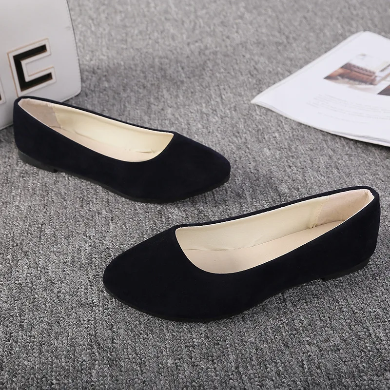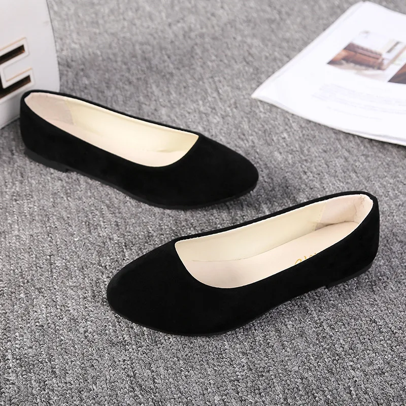 Туфли женские на плоской подошве, классические, из флока, цвет в ас...