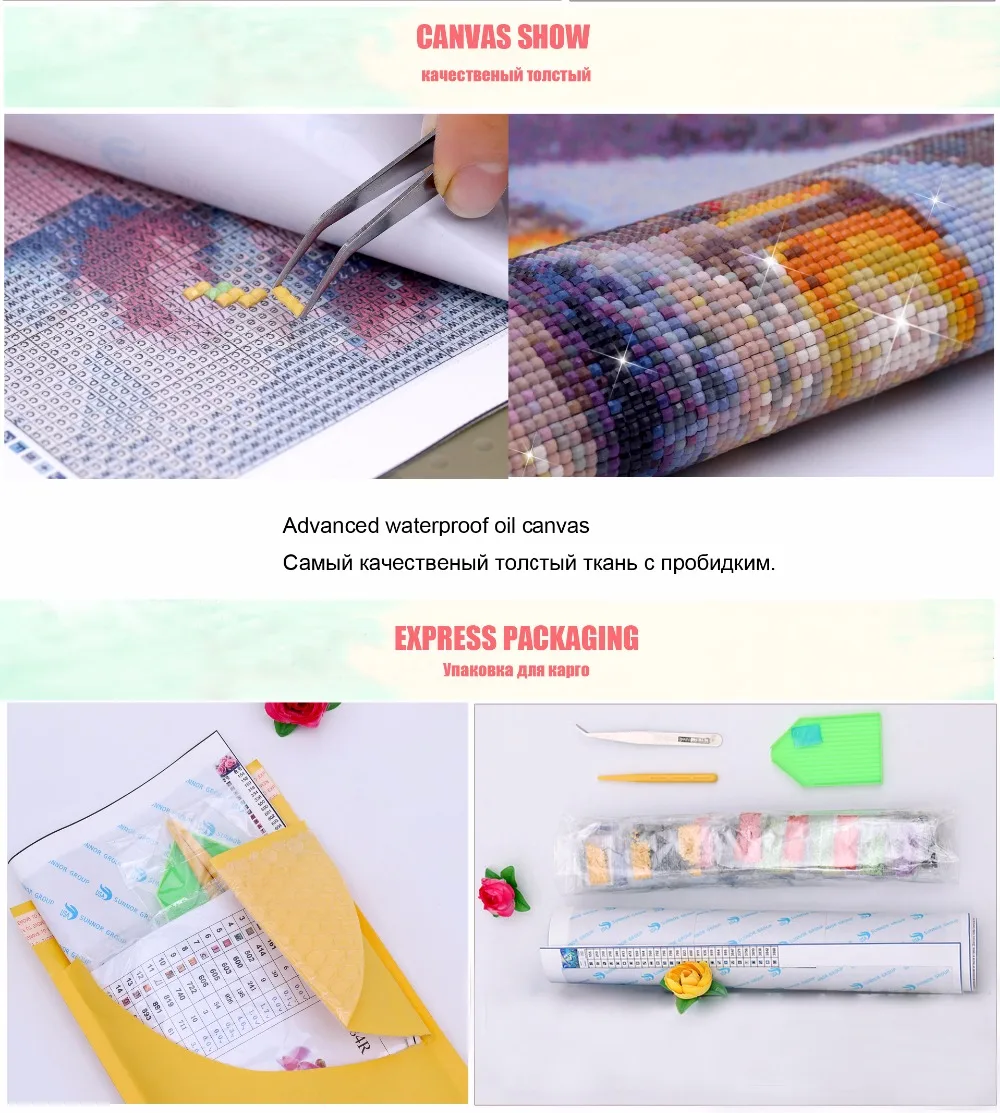 Особенность: полностью квадратная/круглая алмазная живопись Применение: украшение дома/отеля/офиса и подарок Количество цветов: 20-45 цветов О сверле: 100% полностью квадратных/круглых сверл Материал: квадратный/круглый алмаз из смолы Размер изображения: любой размер может быть изменен О раме: без рамки, после завершения необходимо для приклеивания к местной рамке холст посылка свернутый, избегайте складок Посылка: алмазное сверло, ткань с принтом, инструменты