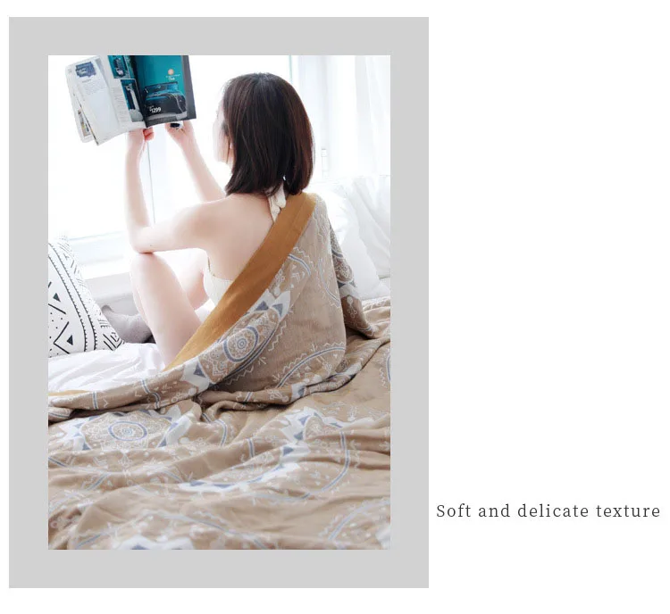 Хлопковое муслиновое одеяло для кровати, дивана, дышащее мягкое пок...