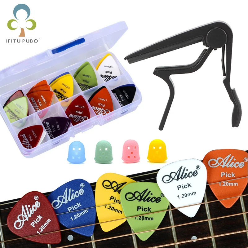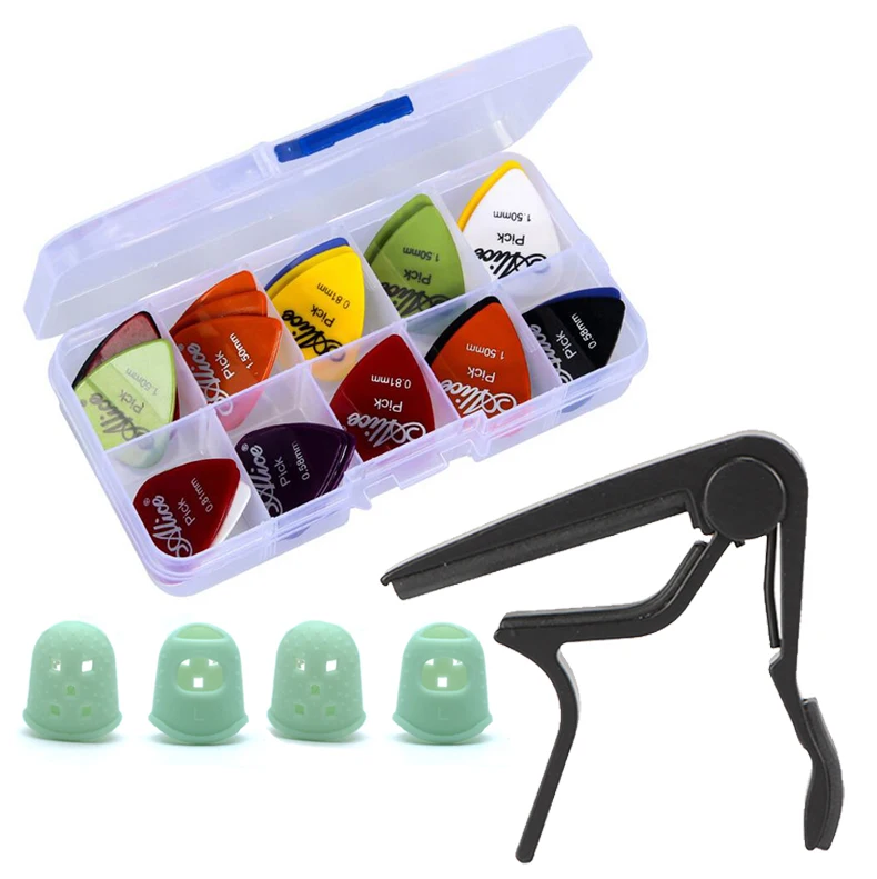 Инструмент для настройки гитары Комплект 24 шт. медиаторы с коробка + 1 гитарный капо + 4 пальца протектор гитары Запчасти Аксессуары для гитары Комплект GYH