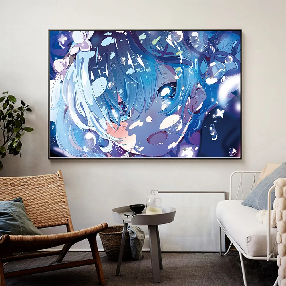 Аниме Re:zero kara hajimeru isekai seikatsu Rem Ram, Картина на холсте, настенное искусство, домашний декор для украшения детской комнаты