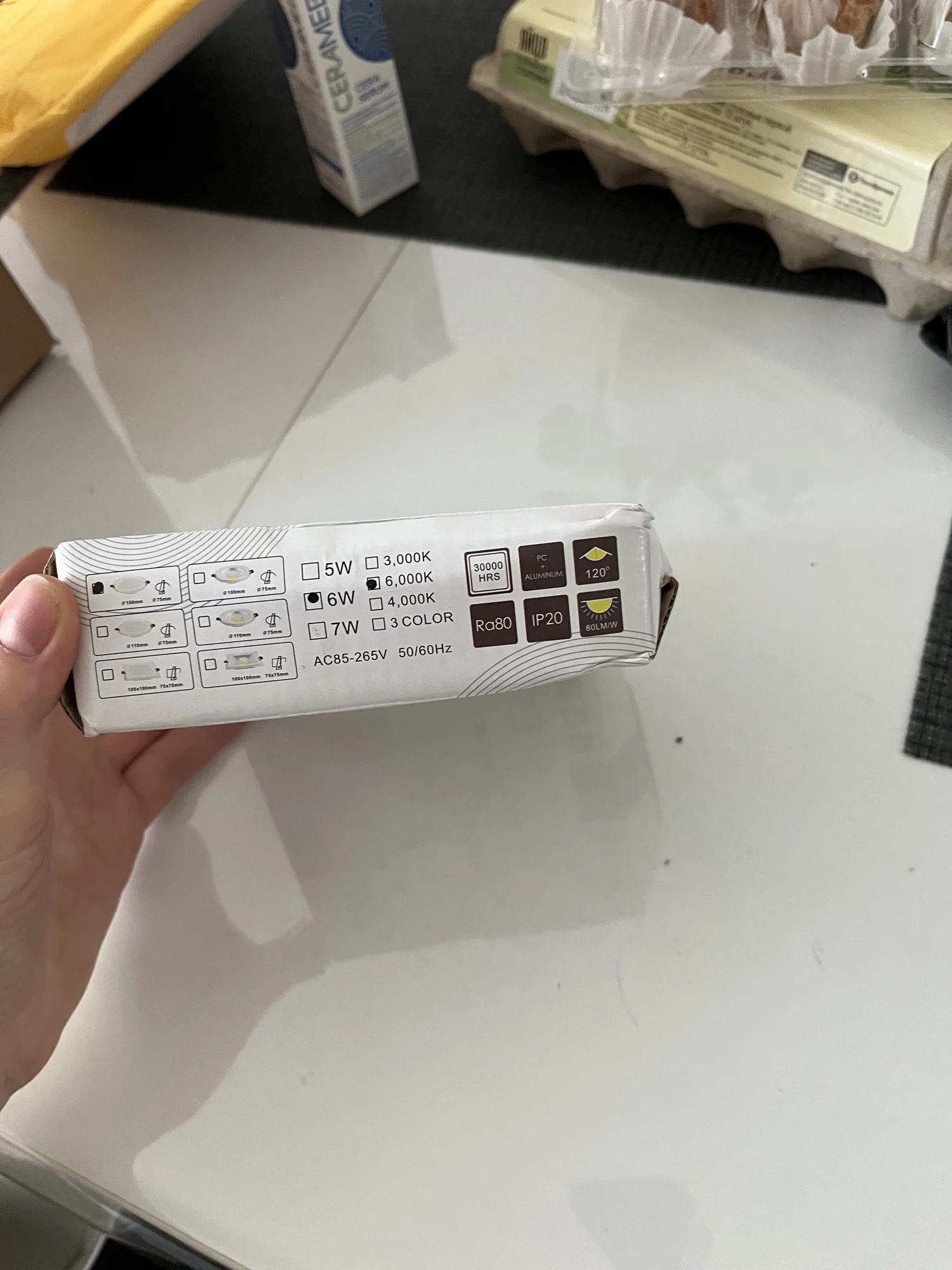 Тип товара Светодиодный вниз светильник s/светодиодный потолочный светильник/светодиодный вниз светильник/светодиодный точечный потолочный светильник/встраиваемый потолочный светильник Мощность 6 Вт/9 Вт/12 Вт/18 Вт Угол луча (°) 180 Входное напряжение AC85-265V 50-60 Гц Цветовая температура Теплый белый (3000K), натуральный белый (4000K), холодный белый (6000K) Применение Дом, отель, магазин... и т. Д. Рабочая температура -40 - 55 °C Коэффициент мощности ПФ> 97% Срок службы > 50000 часов Материал корпуса Алюминий Гарантия 3 года