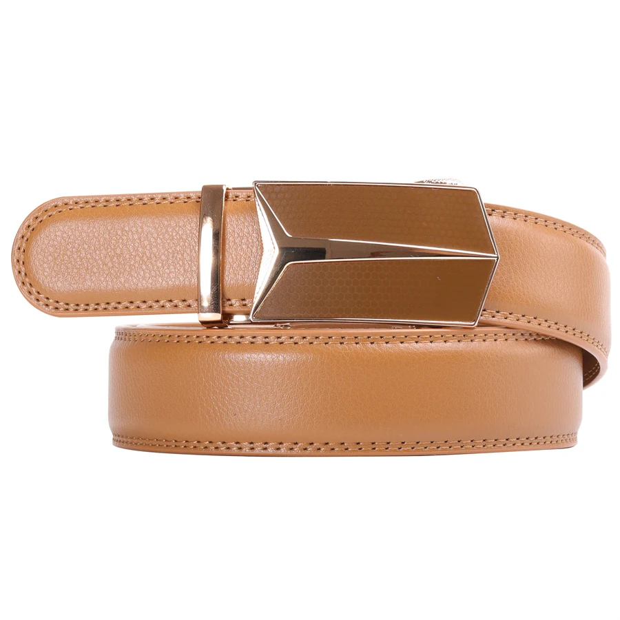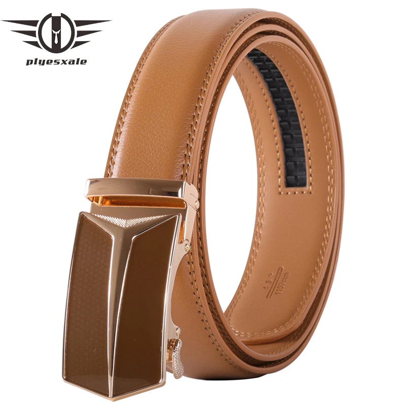 Plyesxale классические деловые светильник коричневые кожаные ремни для мужчин 2020 Роскошные Дизайнерские Автоматическая пряжка деловой ремень мужской B108