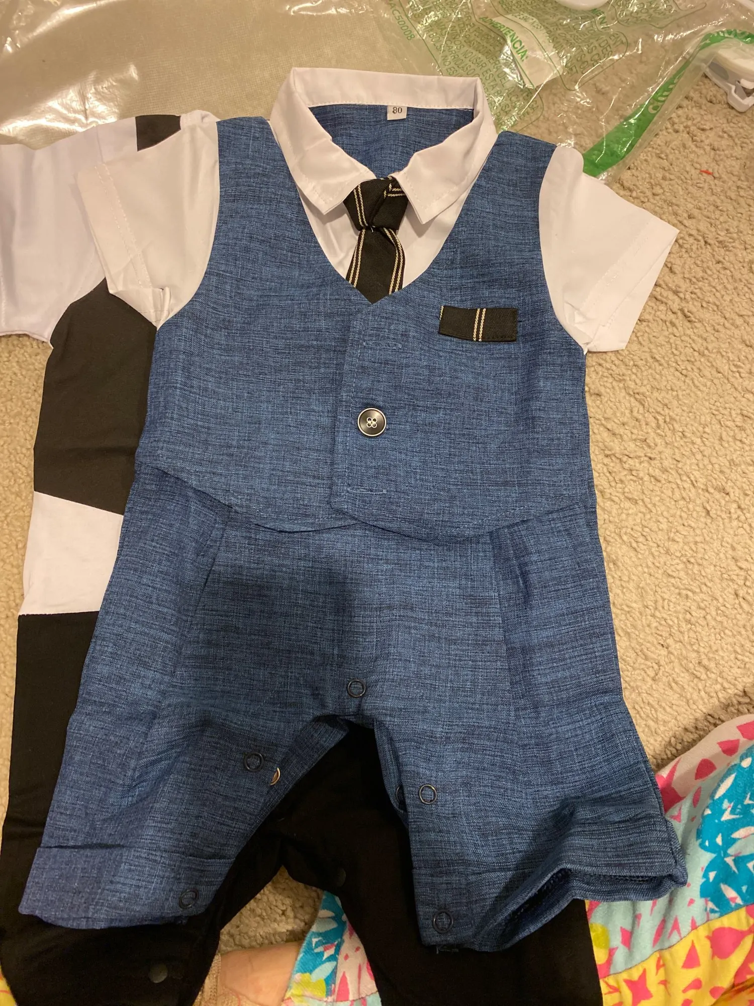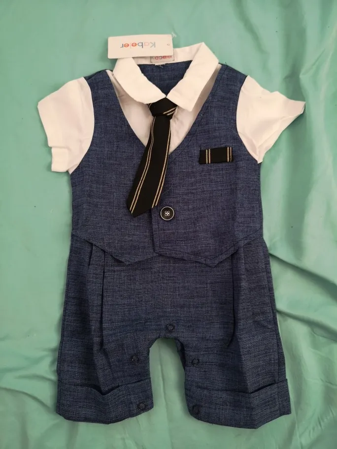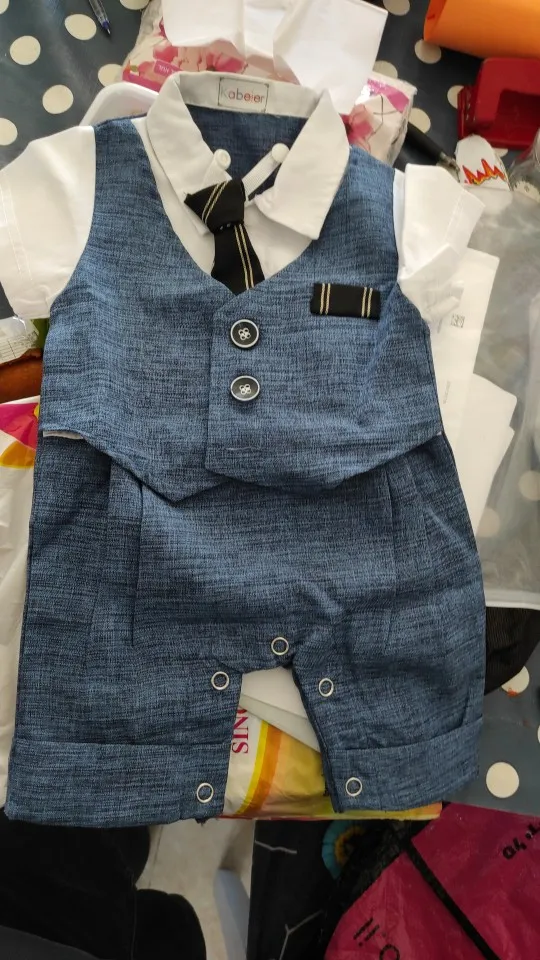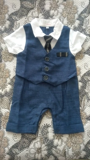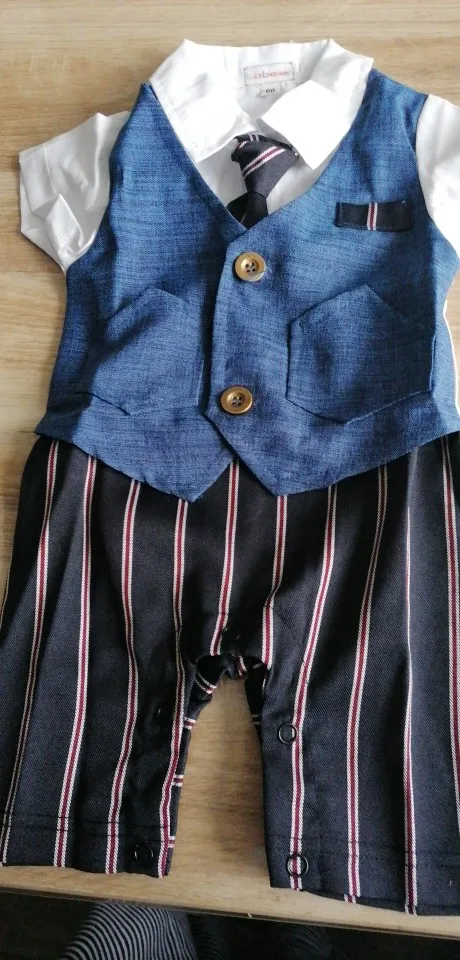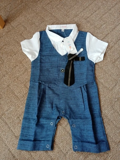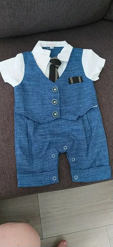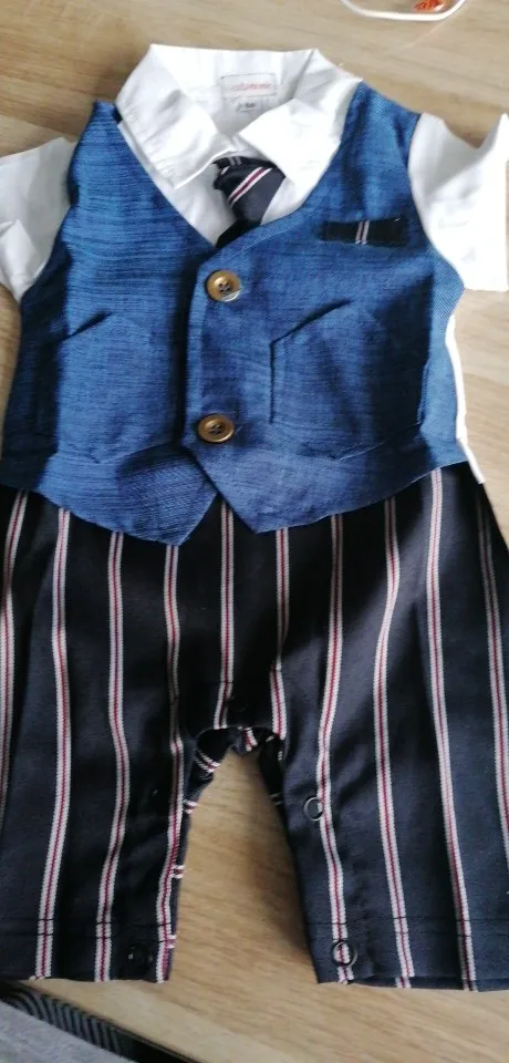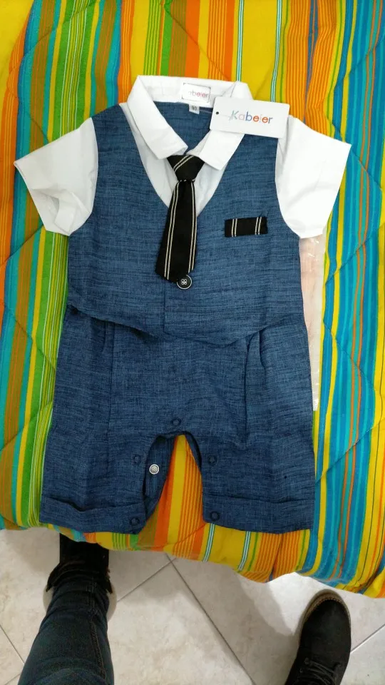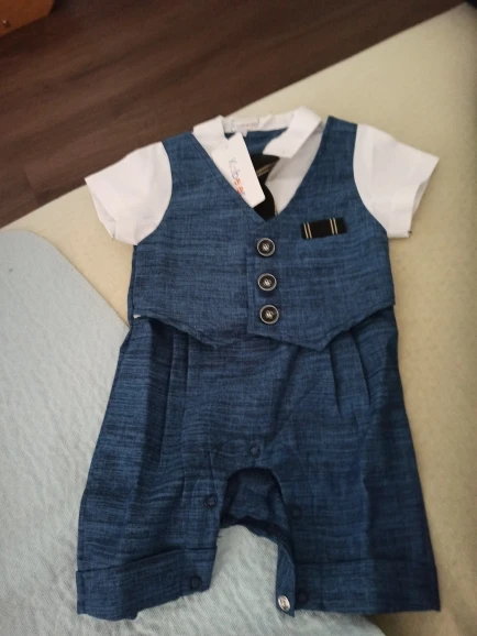 Всякий раз, когда вы заказываете одежду из Китая, вы должны заказать размер или два выше того, который вам подходит, но заказать костюм в течение 18 месяцев (размер 80) И это подходит только ребенку 3 с половиной месяца.