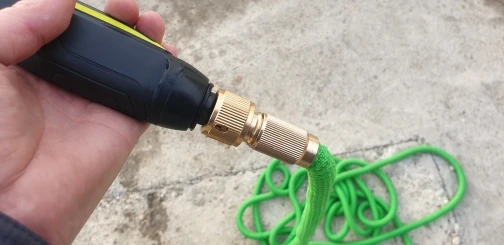 Хороший шланг! Распылительная насадка протекала при первом тестировании, но проблема была легко решена путем затяжки резьбового соединения.