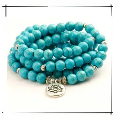 Мужской браслет с цветком лотоса или ожерелья Howlite, 8 мм, 108 бу...