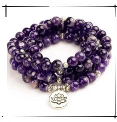 Натуральный фиолетовый кристалл чакры 108 Будда Mala браслет или ож...