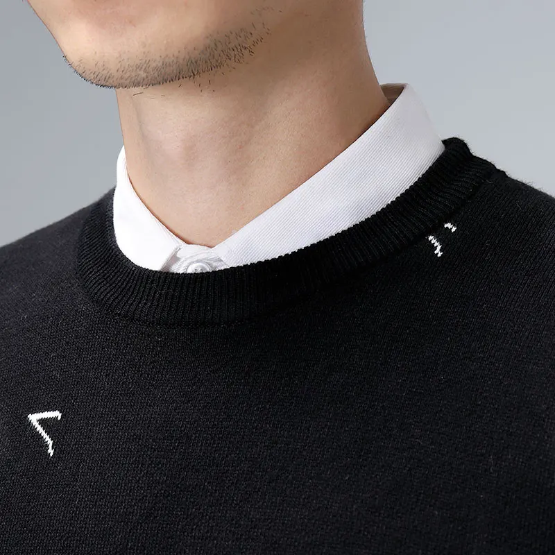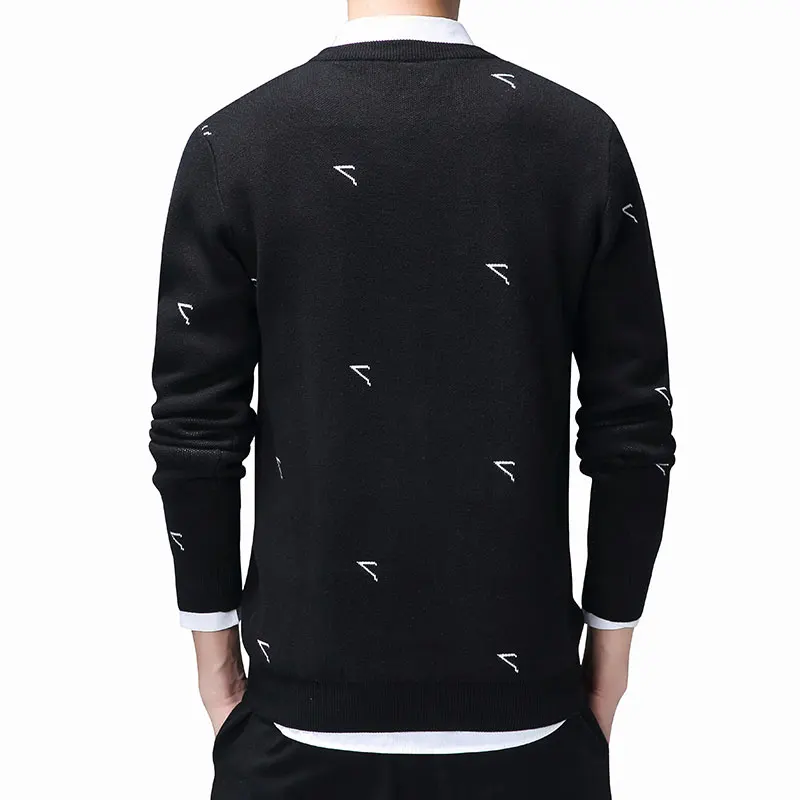 Свитер мужской, хлопковый, с геометрическим узором, теплый, черный